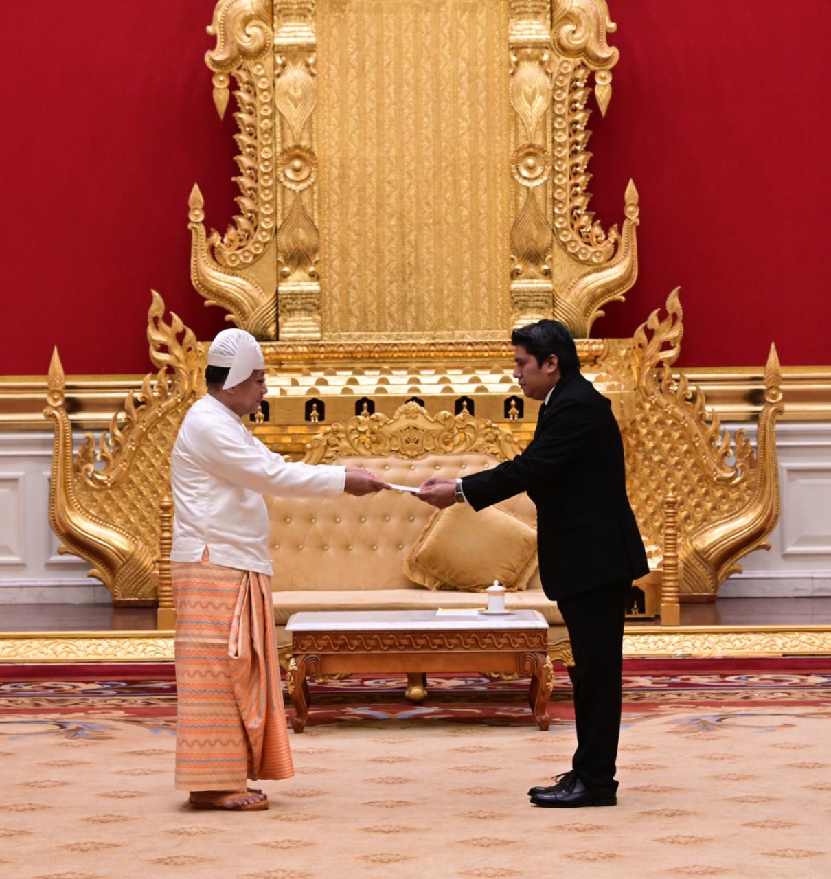 ပြည်ထောင်စုသမ္မတမြန်မာနိုင်ငံတော် ယာယီသမ္မတ နိုင်ငံတော်လုံခြုံရေးနှင့် အေးချမ်းသာယာရေးကော်မရှင် ဥက္ကဋ္ဌ ဗိုလ်ချုပ်မှူးကြီး မင်းအောင်လှိုင်ထံ မြန်မာနိုင်ငံ ဆိုင်ရာ နီကာရာဂွါ သမ္မတနိုင်ငံသံအမတ်ကြီး H.E. Mr. Segundo Martin Calero Escorcia က ယနေ့နံနက် ၁၀ နာရီတွင် နေပြည်တော်ရှိ အမျိုးသားကာကွယ်ရေးနှင့် လုံခြုံရေးကောင်စီရုံး၊ သံတမန်ဆောင်ဧည့်ခန်းမ၌ ၎င်း၏သံအမတ်ခန့်အပ်လွှာကို ပေးအပ်သည်။