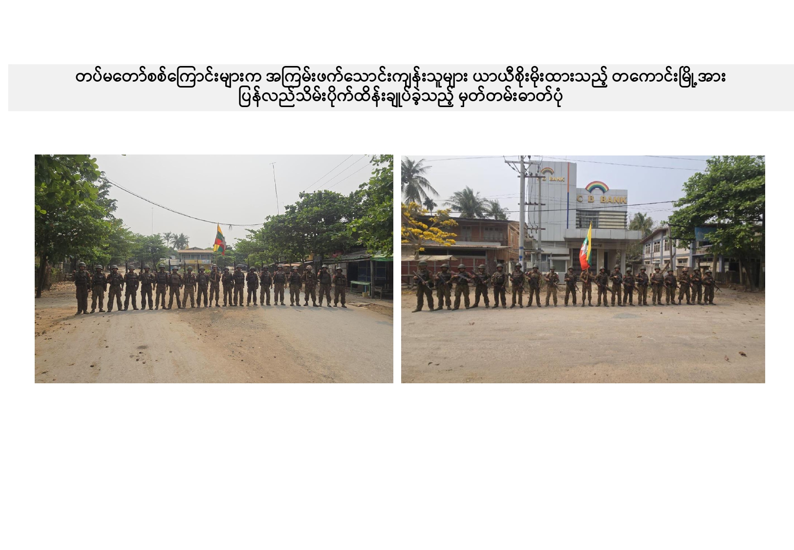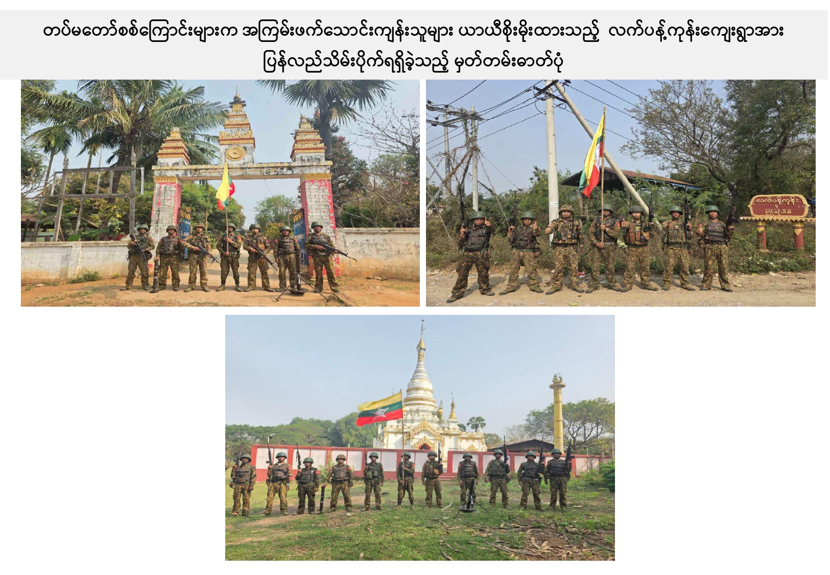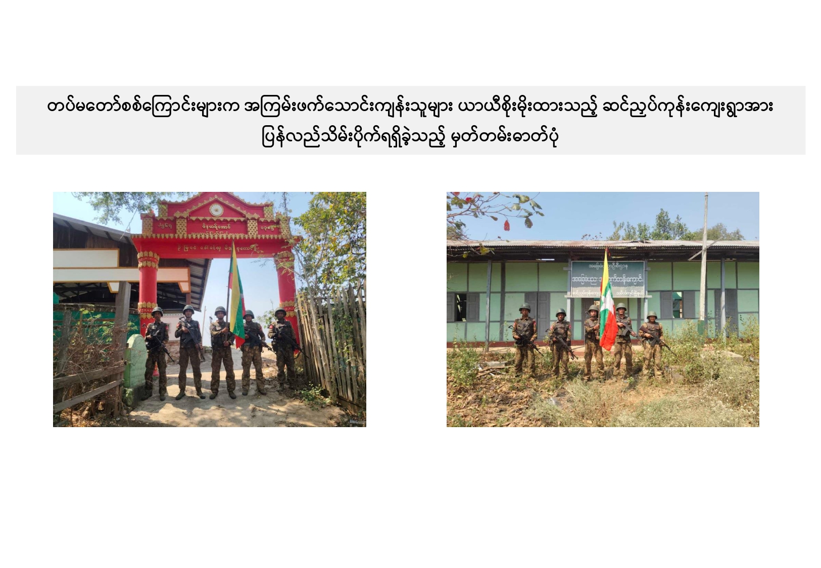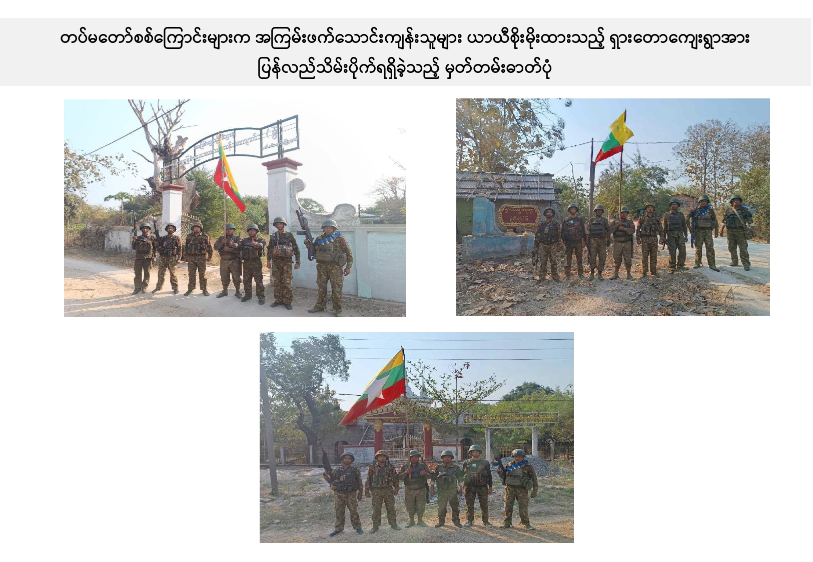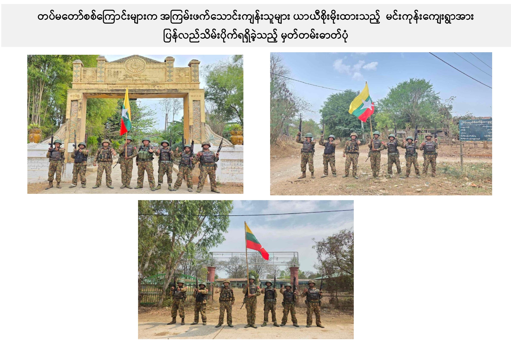 တပ်မတော်စစ်ကြောင်းများက NUG လက်ဝေခံ PDF အမည်ခံ အကြမ်းဖက်သောင်းကျန်းသူများ ယာယီစိုးမိုးထားသည့် တကောင်းမြို့အား ပြန်လည်သိမ်းပိုက်ထိန်းချုပ်၊ မိုင်းရှင်းလင်းရေးလုပ်ငန်းများနှင့် ပြန်လည်ထူထောင်ရေးလုပ်ငန်းများ ဆက်လက်ဆောင်ရွက်