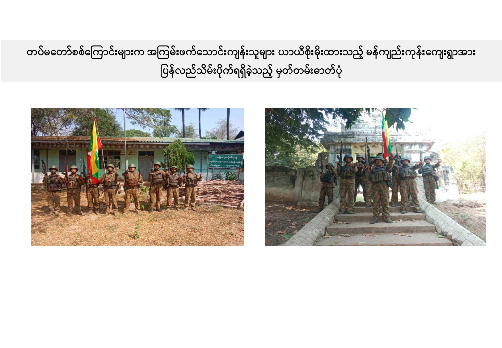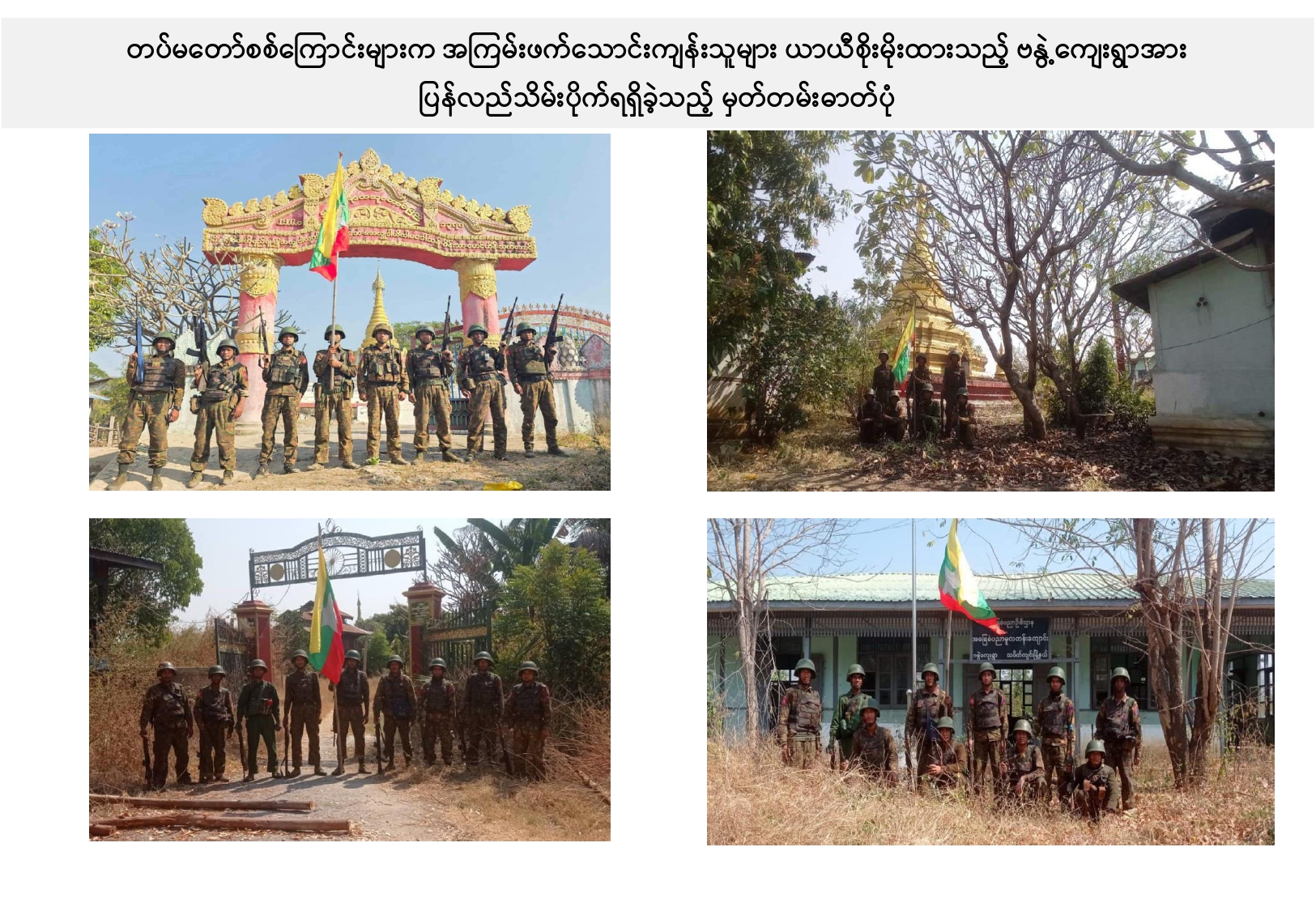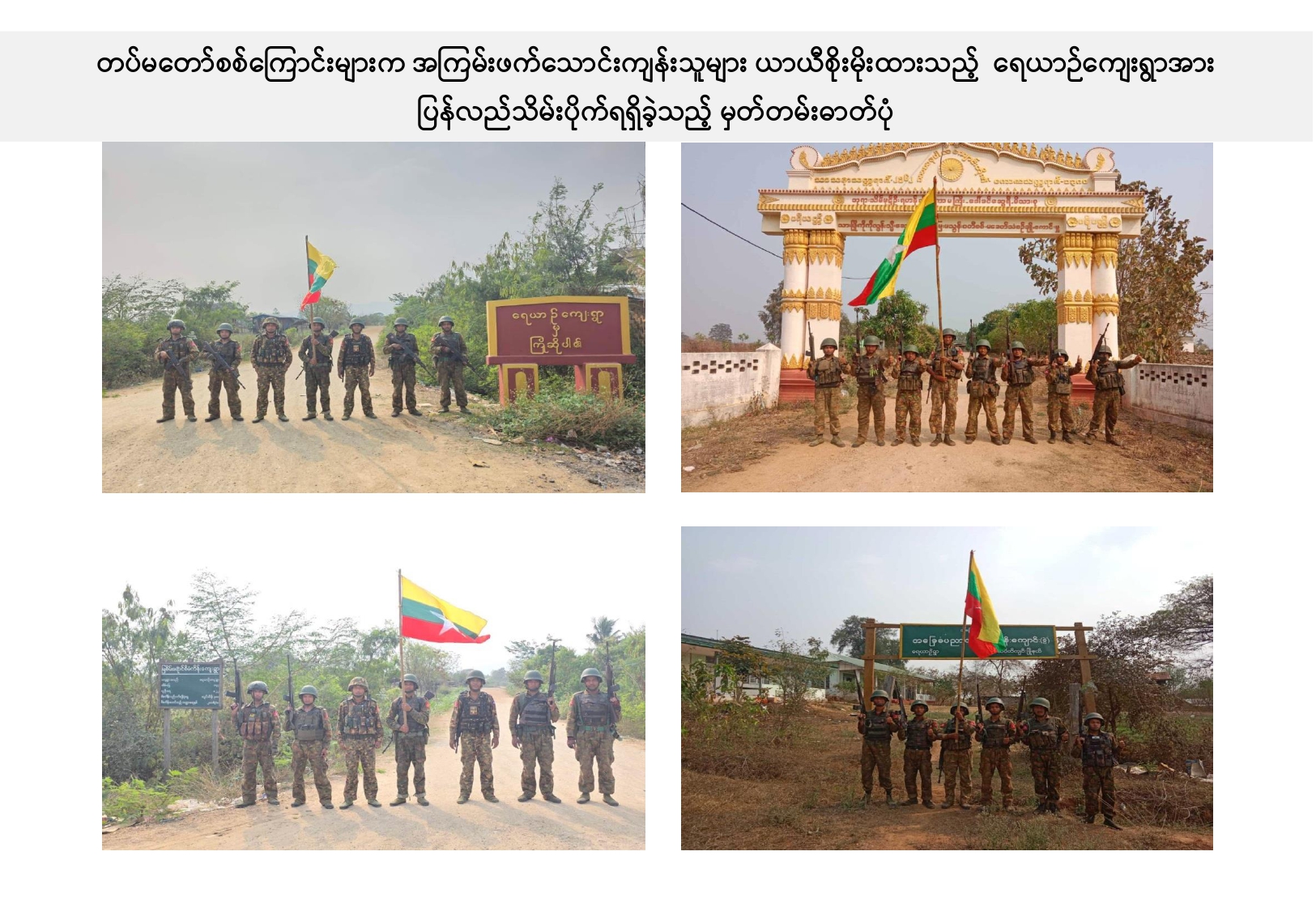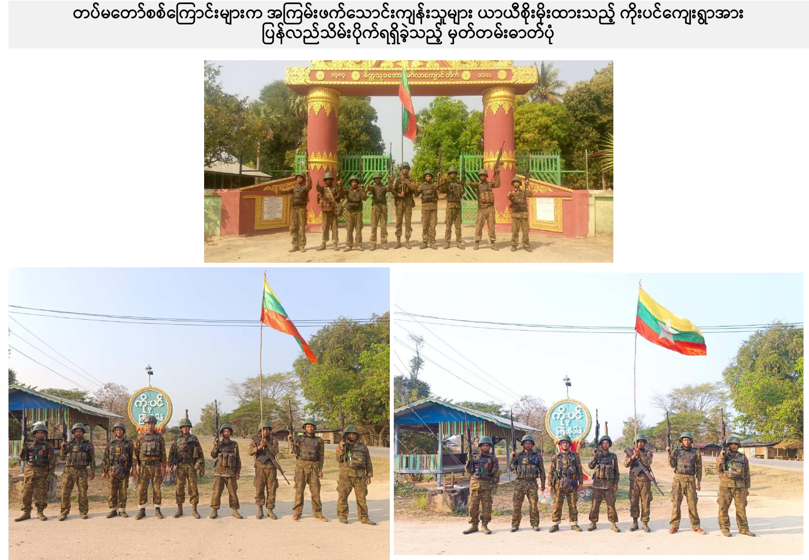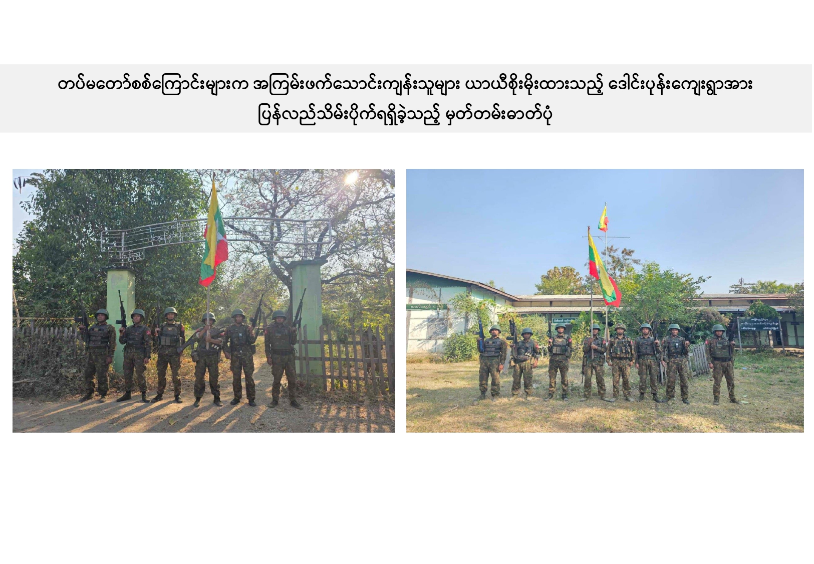 တပ်မတော်စစ်ကြောင်းများက NUG လက်ဝေခံ PDF အမည်ခံ အကြမ်းဖက်သောင်းကျန်းသူများ ယာယီစိုးမိုးထားသည့် တကောင်းမြို့အား ပြန်လည်သိမ်းပိုက်ထိန်းချုပ်၊ မိုင်းရှင်းလင်းရေးလုပ်ငန်းများနှင့် ပြန်လည်ထူထောင်ရေးလုပ်ငန်းများ ဆက်လက်ဆောင်ရွက်