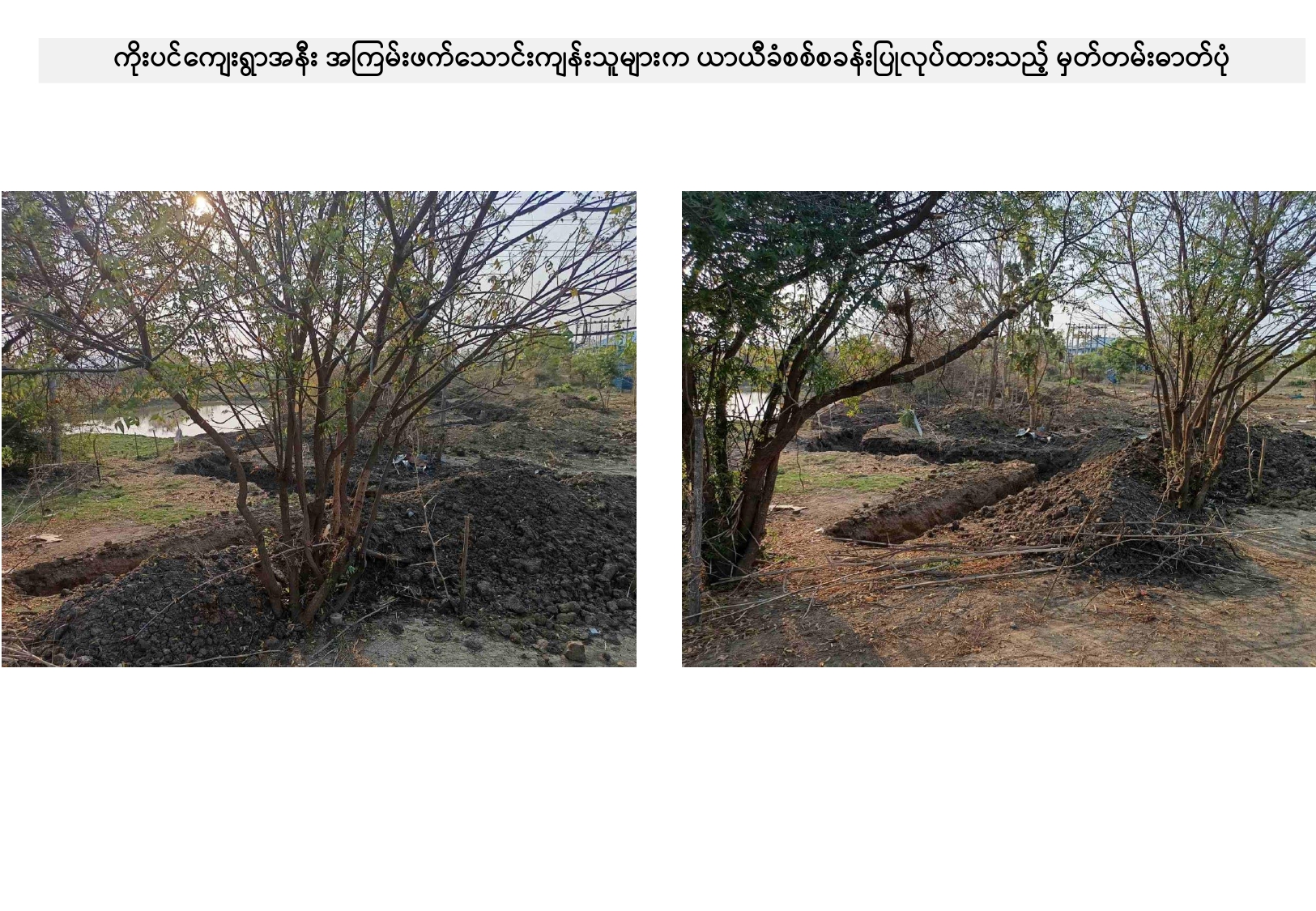 NUG လက်ဝေခံ PDF အမည်ခံအကြမ်းဖက်သောင်းကျန်းသူများ၏ အကြမ်း ဖက်လုပ်ရပ်များ ပြုလုပ်ခဲ့ခြင်းကြောင့် ရှေးဟောင်းယဉ်ကျေးမှုနယ်မြေအတွင်းရှိ ဘာသာရေးဆိုင်ရာ အဆောက်အအုံများ၊ မြို့/ရွာများရှိ အဆောက်အအုံများစွာ ပျက်စီး ဆုံးရှုံးခဲ့ရပြီး ၎င်းတို့ထောင်ထားခဲ့သည့် မိုင်းများကြောင့် အများပြည်သူများ ထိခိုက် ဒဏ်ရာရရှိမှု မရှိစေရေးအတွက် လုံခြုံရေးတပ်ဖွဲ့ဝင်များက မိုင်းရှင်းလင်းခြင်းလုပ်ငန်း များကို နေရာအလိုက်၊ လမ်းများအလိုက် စနစ်တကျ ဆက်လက်ဆောင်ရွက် လျက်ရှိသည်။