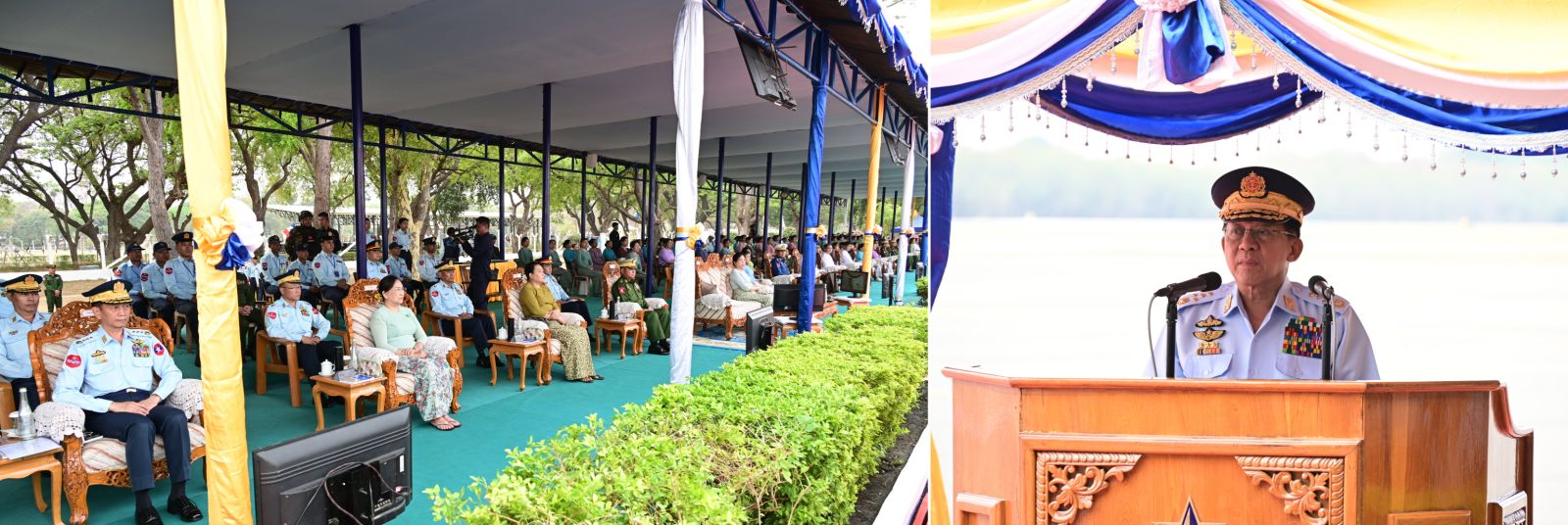 နိုင်ငံတော်လုံခြုံရေးနှင့်အေးချမ်းသာယာရေးကော်မရှင်ဥက္ကဋ္ဌ တပ်မတော်ကာကွယ်ရေးဦးစီးချုပ် ဗိုလ်ချုပ်မှူးကြီး မင်းအောင်လှိုင်တပ်မတော်(လေ)၊ လေယာဉ်များ တပ်တော်ဝင်အခမ်းအနားသို့ တက်ရောက်ချီးမြှင့်