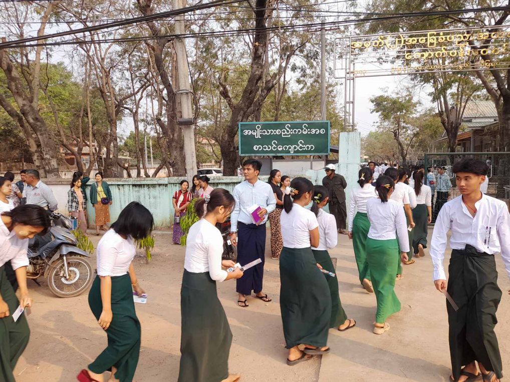 ယင်းသို့ ကျောင်းသား၊ ကျောင်းသူများ စိတ်အေးချမ်းသာစွာနှင့် ဘေးအန္တရာယ်ကင်းရှင်းစွာ ဖြေဆိုနိုင်ရေးအတွက် သက်ဆိုင်ရာ လုံခြုံရေးအဖွဲ့ဝင်များ၊ ကျန်းမာရေးဝန်ထမ်းများ၊ မီးသတ် တပ်ဖွဲ့ဝင်များနှင့် ရပ်ကွက်ကျေးရွာအုပ်ချုပ်ရေးအဖွဲ့ဝင်များက စနစ်တကျ စောင့်ကြပ်ကြည့်ရှုပေး လျက်ရှိပြီး ကျောင်းသား၊ ကျောင်းသူများ၏ စာမေးပွဲဖြေဆိုနေမှုများကို ပညာရေးဝန်ကြီးဌာန၊ ပြည်ထောင်စုဝန်ကြီး ဒေါက်တာ ချောချောစိန် နှင့် တာဝန်ရှိသူများ၊ နေပြည်တော်ကောင်စီဥက္ကဋ္ဌ၊ တိုင်းဒေသကြီးနှင့် ပြည်နယ်များမှ ဝန်ကြီးချုပ်များ၊ တိုင်းစစ်ဌာနချုပ်အသီးသီးမှ တာဝန်ရှိသူများက သွားရောက်ကြည့်ရှု အားပေးခဲ့ကြသည်။