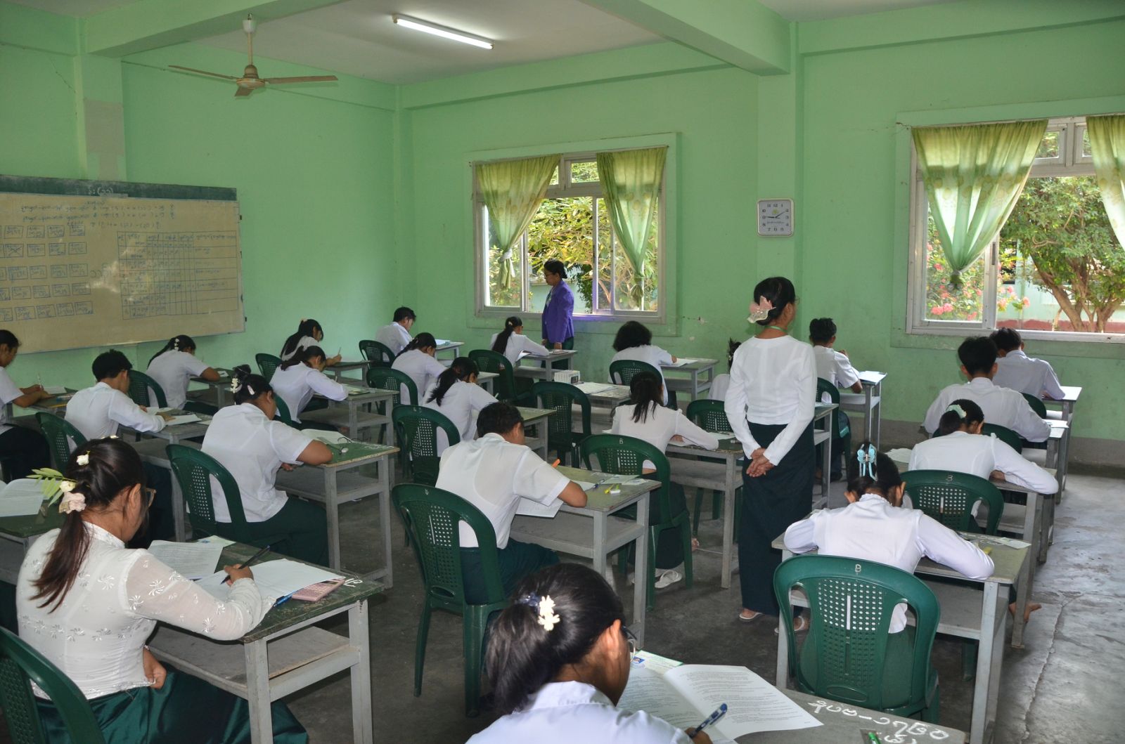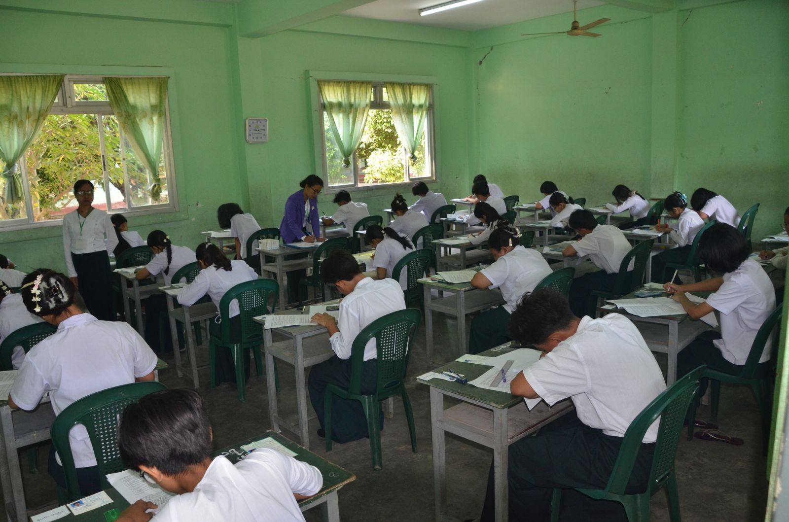 ဦးစွာ စာမေးပွဲဖြေဆိုခြင်းမပြုမီ ဆရာ၊ ဆရာမများက ကျောင်းသား၊ ကျောင်းသူများအား စာမေးပွဲဖြေဆိုခွင့်ကတ်များ မှန်/မမှန် စစ်ဆေးခြင်းများနှင့် လိုအပ်သည့် စစ်ဆေးမှုများကို စာမေးပွဲ စည်းမျဉ်းစည်းကမ်းများနှင့်အညီ စနစ်တကျ ဆောင်ရွက်ကြသည်။