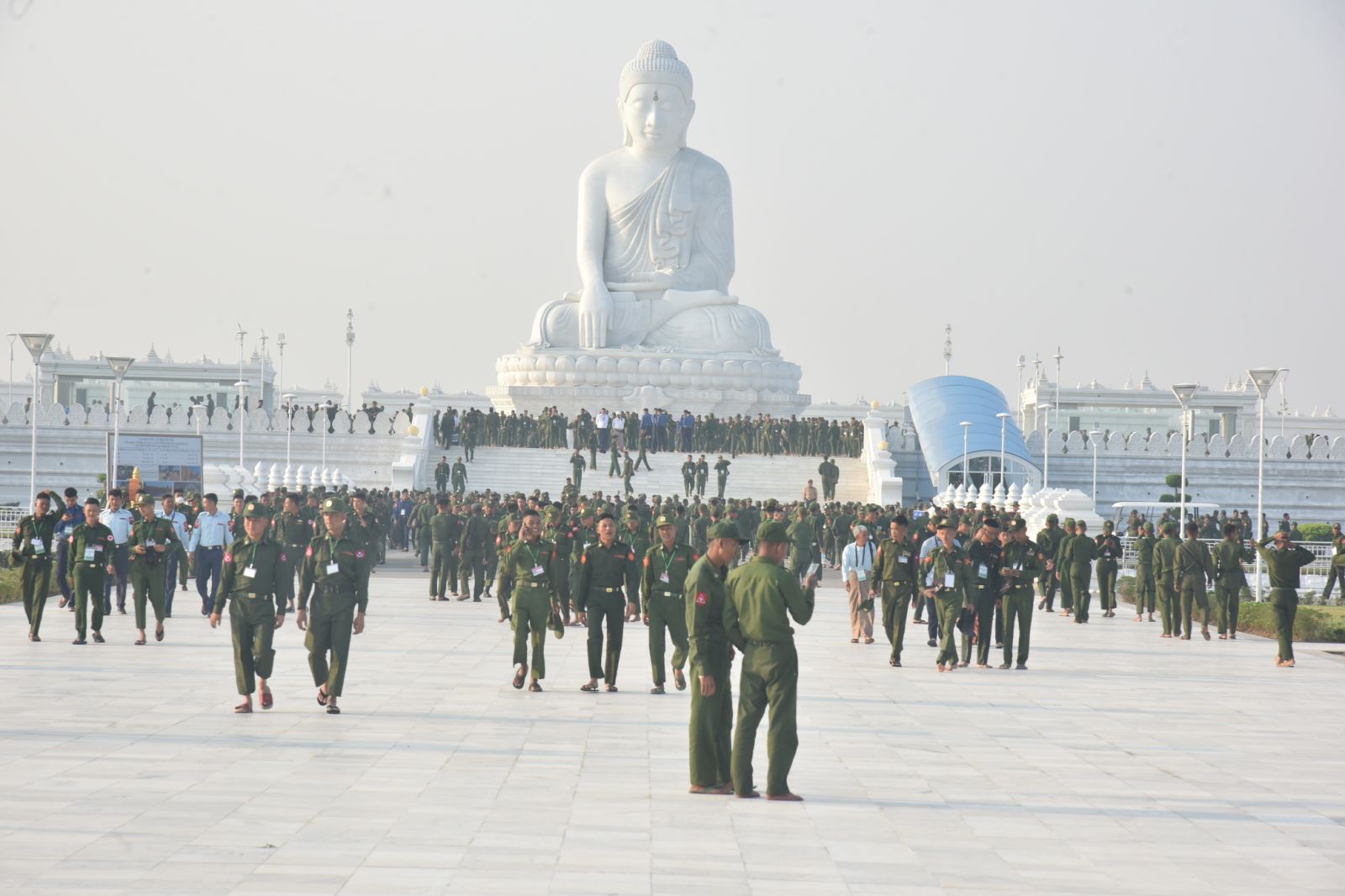 (၈၁) နှစ်မြောက်တပ်မတော်နေ့ စစ်ရေးပြအခမ်းအနားတွင်ပါဝင်ချီတက်ကြမည့် စစ်ရေးပြစစ်ကြောင်းများမှ အရာရှိ၊ စစ်သည်များသည် အဖွဲ့ ၂ ဖွဲ့ခွဲ၍ ယနေ့တွင် ပြည်ထောင်စုနယ်မြေ နေပြည်တော်၊ ဒက္ခိဏသီရိမြို့နယ်ရှိ ဗုဒ္ဓဥယျာဉ်ဝတ္ထုကံတော် တွင် တည်ထားပူဇော်သည့်ကမ္ဘာပေါ်ရှိ ထိုင်တော်မူ ကျောက်ဆစ်ဗုဒ္ဓရုပ်ပွားတော်များ အနက် ဉာဏ်တော်အမြင့်ဆုံးဖြစ်သည့် မာရဝိဇယဗုဒ္ဓ ရုပ်ပွားတော်မြတ်ကြီးအား လာရောက်ဖူးမြော်ကြည်ညိုကြသည်။