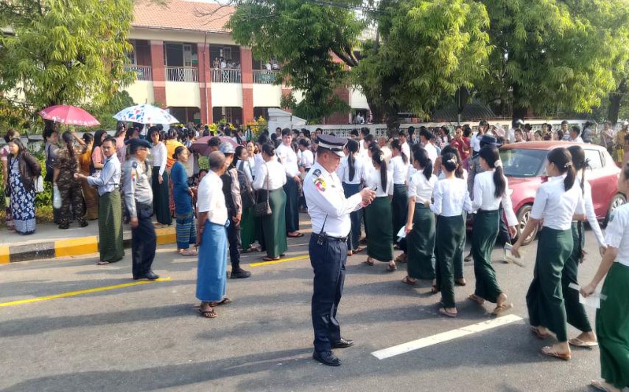 ယင်းသို့ ကျောင်းသား၊ ကျောင်းသူများ စိတ်အေးချမ်းသာစွာနှင့် ဘေးအန္တရာယ်ကင်းရှင်းစွာ ဖြေဆိုနိုင်ရေးအတွက် သက်ဆိုင်ရာ လုံခြုံရေးအဖွဲ့ဝင်များ၊ ကျန်းမာရေးဝန်ထမ်းများ၊ မီးသတ် တပ်ဖွဲ့ဝင်များနှင့် ရပ်ကွက်ကျေးရွာအုပ်ချုပ်ရေးအဖွဲ့ဝင်များက စနစ်တကျ စောင့်ကြပ်ကြည့်ရှုပေး လျက်ရှိပြီး ကျောင်းသား၊ ကျောင်းသူများ၏ စာမေးပွဲဖြေဆိုနေမှုများကို သက်ဆိုင်ရာ တာဝန်ရှိသူများက သွားရောက်ကြည့်ရှု အားပေးခဲ့ကြသည်။
