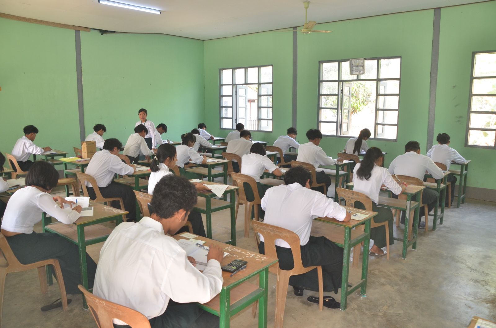ဦးစွာ စာမေးပွဲဖြေဆိုခြင်းမပြုမီ ဆရာ၊ ဆရာမများက ကျောင်းသား၊ ကျောင်းသူများအား စာမေးပွဲဖြေဆိုခွင့်ကတ်များ မှန်/မမှန် စစ်ဆေးခြင်းများနှင့် လိုအပ်သည့် စစ်ဆေးမှုများကို စာမေးပွဲ စည်းမျဉ်းစည်းကမ်းများနှင့်အညီ စနစ်တကျ ဆောင်ရွက်ကြသည်။