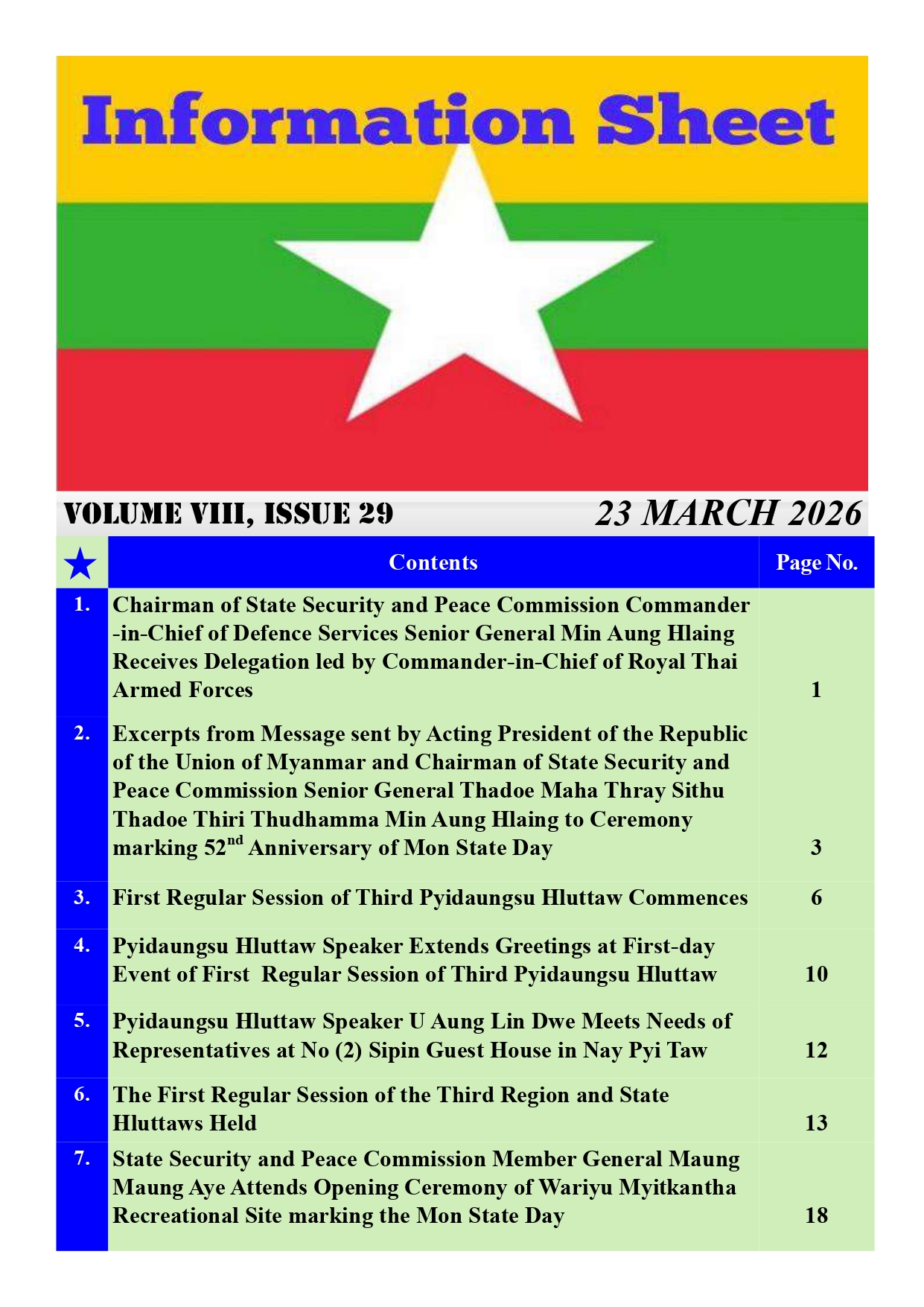 Volume VIII, Issue 29 Myanmar & English (23-3-2026)