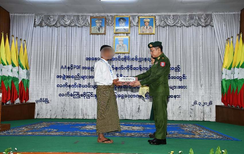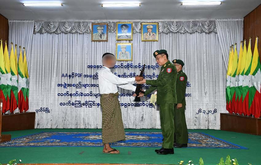 နိုင်ငံတော်နှင့် တပ်မတော်၏ ငြိမ်းချမ်းရေးလုပ်ငန်းစဉ်များကို လက်ခံယုံကြည်သည့် PDF အဖွဲ့ဝင် ၈ ဦးနှင့် AA အဖွဲ့ဝင် ၁၀ ဦးတို့သည် လက်နက်၊ ခဲယမ်းများနှင့်အတူ ဥပဒေဘောင်အတွင်းသို့ ဝင်ရောက်