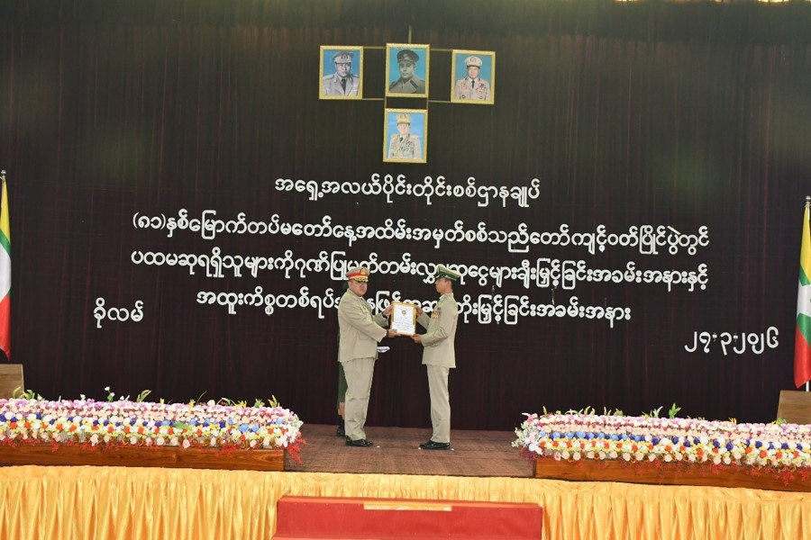 ထို့နောက် (၈၁)နှစ်မြောက် တပ်မတော်နေ့အထိမ်းအမှတ် စစ်သည်တော် ကျင့်ဝတ်ပြိုင်ပွဲများတွင် ဆုရရှိကြသူများ၊ တပ်မတော်(ကြည်း၊ရေ၊လေ)အားကစား ပြိုင်ပွဲများ၊ သင်တန်းများတွင် ဆုရရှိအောင်စွမ်းဆောင်နိုင်ခဲ့ကြသူများနှင့် အဆင့် တိုးမြှင့်ခြင်းခံရသည့် စစ်သည်များအား သက်ဆိုင်ရာ တိုင်းစစ်ဌာနချုပ်များမှ တိုင်းမှူး များနှင့် တာဝန်ရှိသူများက အဆင့်တံဆိပ်များ၊ ဂုဏ်ထူးဆောင်လက်မှတ် များနှင့် ဂုဏ်ပြုဆုငွေများ ပေးအပ်ချီးမြှင့်ကြသည်။