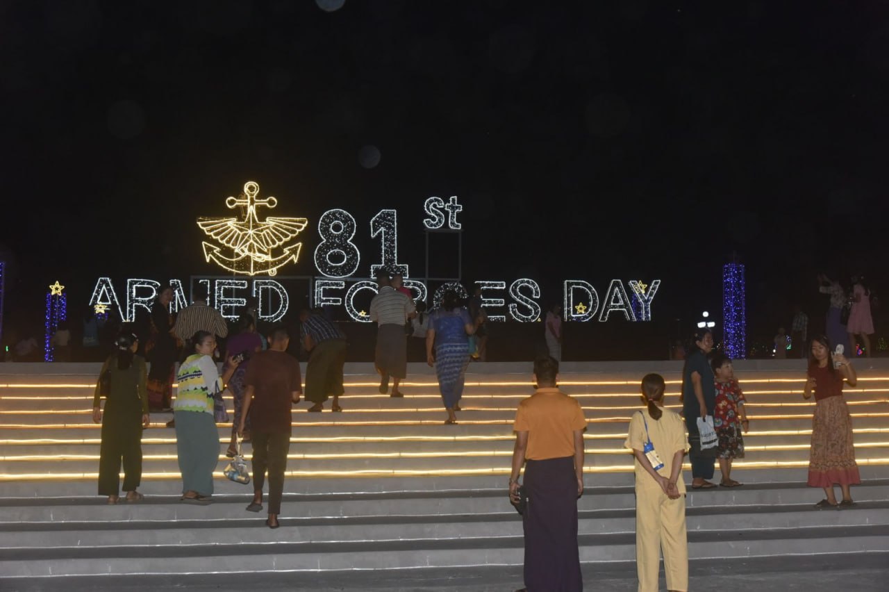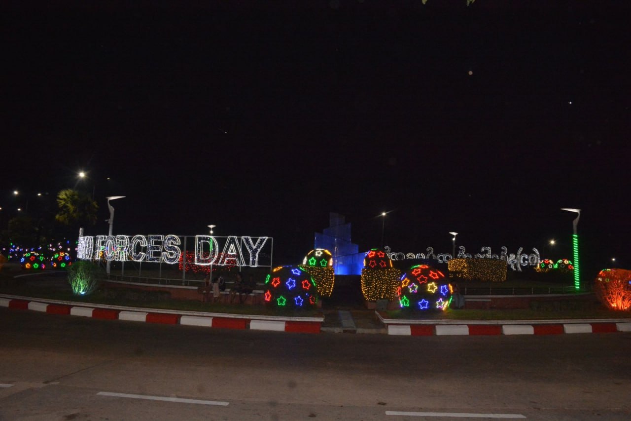 (၈၁)နှစ်မြောက်တပ်မတော်နေ့အား ဂုဏ်ပြုသောအားဖြင့် တိုင်းဒေသ ကြီးနှင့်ပြည်နယ်တို့၌လည်း မီးရောင်စုံများ၊ မီးအလှများဖြင့် ထွန်းညှိ၍ ဂုဏ်ပြုအလှ ဆင်မှုများ ပြုလုပ်ထားလျက်ရှိရာ အဆိုပါ နေရာများသို့ လာရောက်အပန်းဖြေ လည်ပတ်ကြသူများဖြင့် စည်းကားလျက်ရှိကြောင်း သတင်းရရှိသည်။