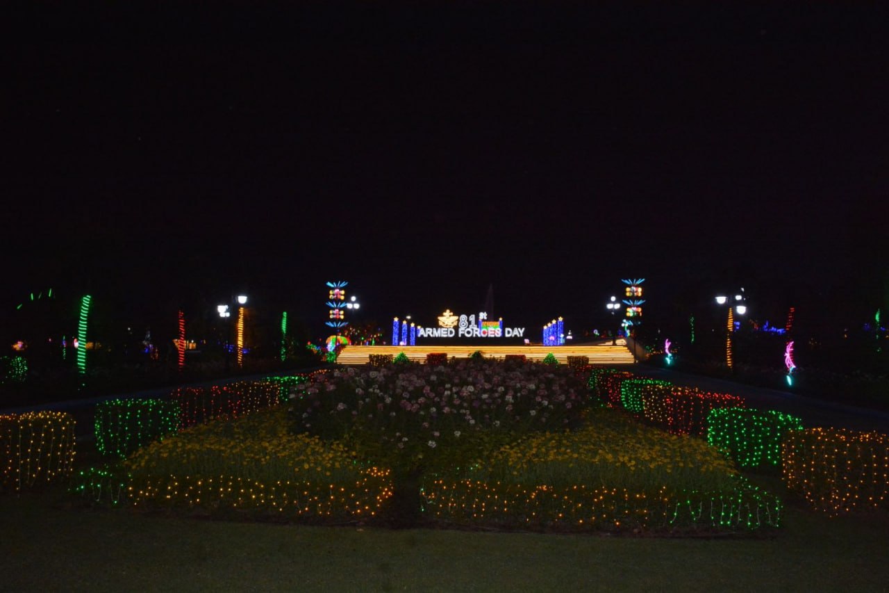 ထို့အပြင် ၂၀၂၆ ခုနှစ်၊ (၈၁)နှစ်မြောက်တပ်မတော်နေ့အား ဂုဏ်ပြုသော အားဖြင့် နေပြည်တော်စစ်ရေးပြကွင်းကြီးရှေ့ရှိ တပ်မတော်ပန်းခြံတွင်လည်း မီးအလှ များဖြင့် ဖန်တီးပုံဖော်ထားသည့် ပြည်ထောင်စုသမ္မတမြန်မာနိုင်ငံတော်အလံနှင့် (၈၁) နှစ်မြောက်တပ်မတော်နေ့အထိမ်းအမှတ်တံဆိပ်၊ တပ်မတော်(ကြည်း၊ ရေ၊ လေ) တပ်ဖွဲ့များတွင် အသုံးပြုသည့် ယာဉ်ယန္တရားပုံစံငယ်များ၊ ရေယာဉ်ပုံစံငယ်များ၊ လေယာဉ်ပုံစံငယ်များ၊ ရဟတ်ယာဉ်ပုံစံငယ်များကို ပြသထားသည်။ ပန်းခြံအတွင်း ဖိုင်ဘာဖြင့် ပြုလုပ်ထားသည် စစ်သည်ရုပ်တုငယ်များ၊ ပုံဖော်ထားသည့် ပန်းအလှများ၊ သစ်ပင်များတွင် တပ်ဆင်ထားသည့် မီးရောင်စုံများ၊ မီးအလှများဖြင့် ပြုလုပ်ထား ရှိရာ လာရောက်အပန်းဖြေလည်ပတ်ကြသူများဖြင့် စည်ကားလျက်ရှိသည်။