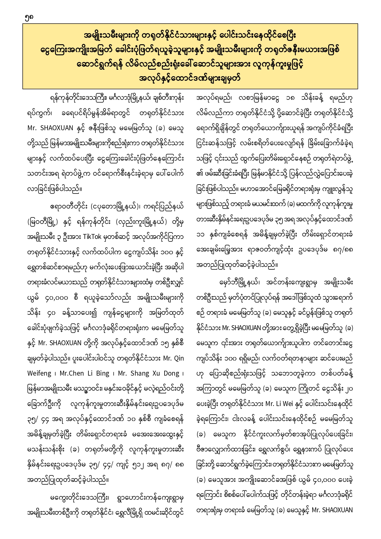 သတင်းထုတ်ပြန်ချက်များ
