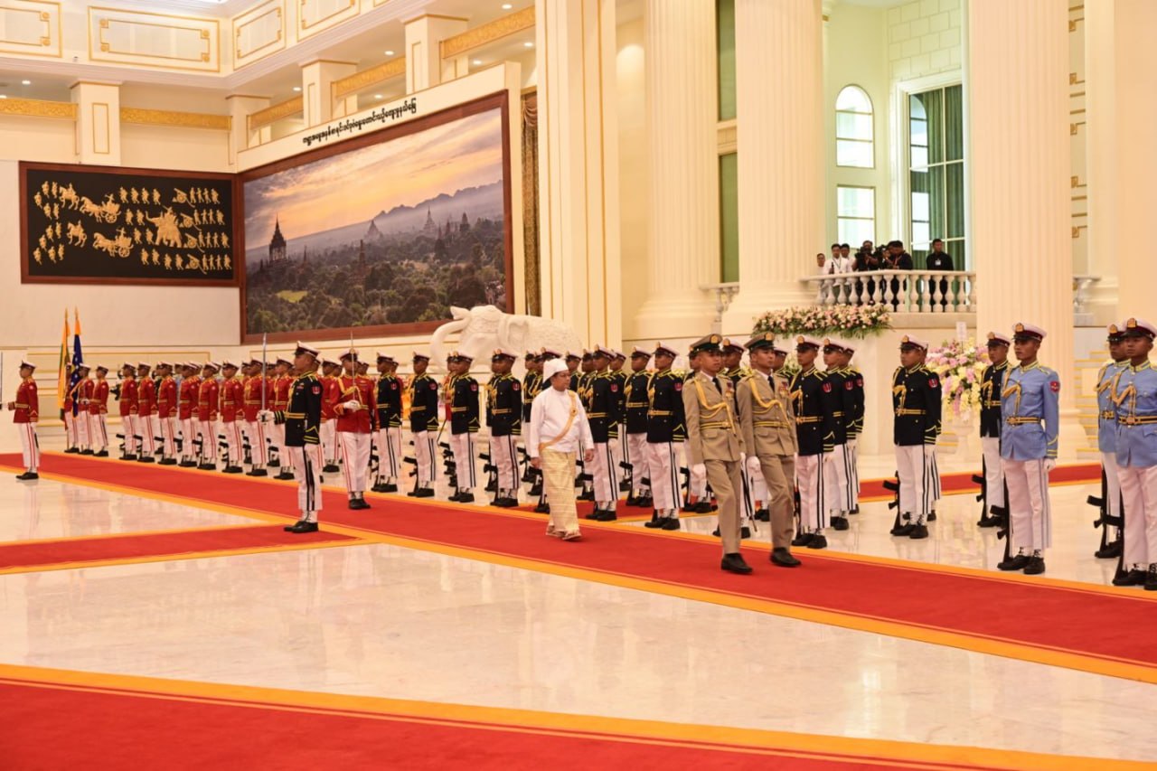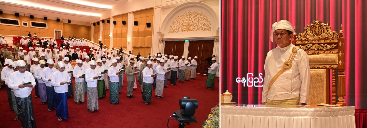 ပြည်ထောင်စုသမ္မတ မြန်မာနိုင်ငံတော်၊ နိုင်ငံတော်သမ္မတ ဦးမင်းအောင်လှိုင် ၏ မိန့်ခွန်းနာခံခြင်းနှင့် ကတိသစ္စာပြုခြင်း အခမ်းအနားကို ယနေ့မွန်းလွဲပိုင်းတွင် နေပြည်တော်ရှိ နိုင်ငံတော်သမ္မတ၏ ဧည့်ဆောင်တော်၌ ကျင်းပပြုလုပ်သည်။