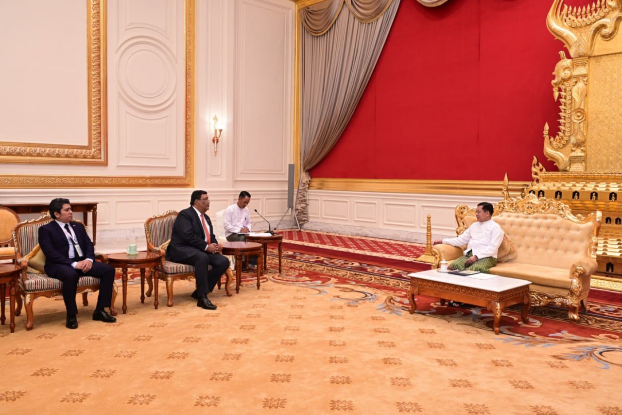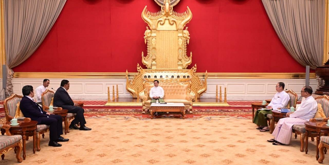 ပြည်ထောင်စုသမ္မတ မြန်မာနိုင်ငံတော် သမ္မတ ဦးမင်းအောင်လှိုင်ထံ နိုင်ငံတော် သမ္မတအဖြစ် ကတိသစ္စာပြုခြင်းအခမ်းအနားသို့ တက်ရောက်ခဲ့သည့် နီကာရာဂွာ သမ္မတနိုင်ငံ၊ နိုင်ငံခြားရေးဝန်ကြီး H.E. Mr. Valdrack Jaentschke ဦးဆောင်သည့် ကိုယ်စားလှယ်အဖွဲ့က ယနေ့မွန်းလွဲပိုင်းတွင် နိုင်ငံတော်သမ္မတ၏ ဧည့်ဆောင်တော်၌ လာရောက်ဂါရဝပြုတွေ့ဆုံသည်။