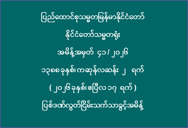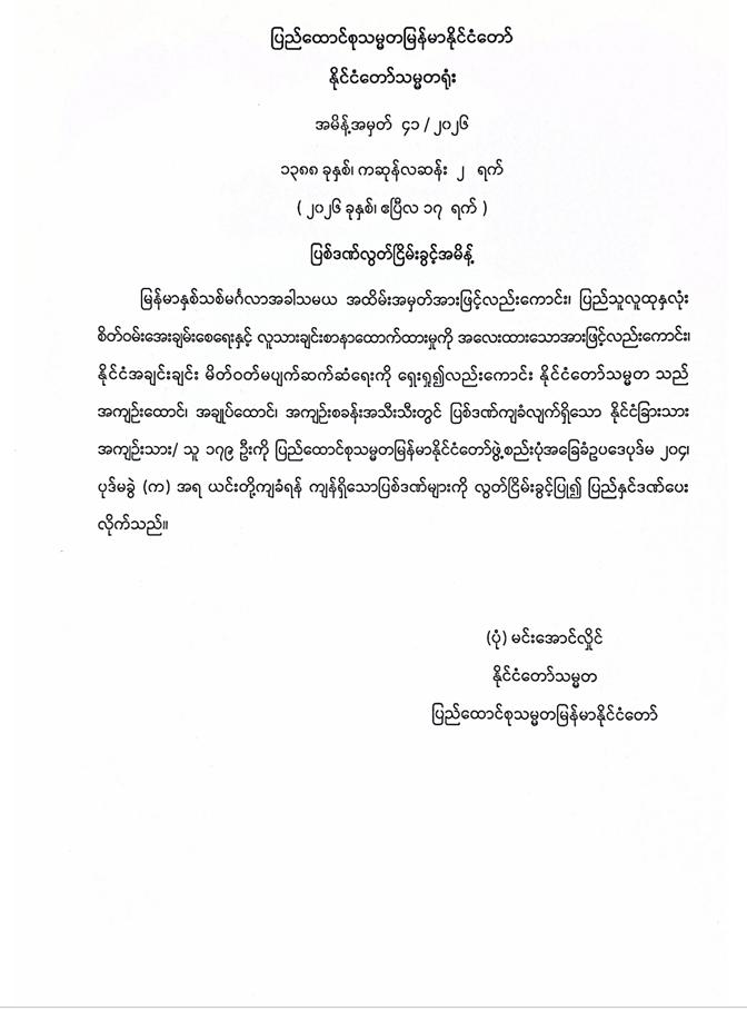 ပြည်ထောင်စုသမ္မတမြန်မာနိုင်ငံတော် နိုင်ငံတော်သမ္မတရုံး အမိန့်အမှတ် ၄၁/၂၀၂၆ ၁၃၈၈ ခုနှစ်၊ ကဆုန်လဆန်း ၂ ရက် (၂၀၂၆ ခုနှစ်၊ ဧပြီလ ၁၇ ရက်)ပြစ်ဒဏ်လွတ်ငြိမ်းခွင့်အမိန့်