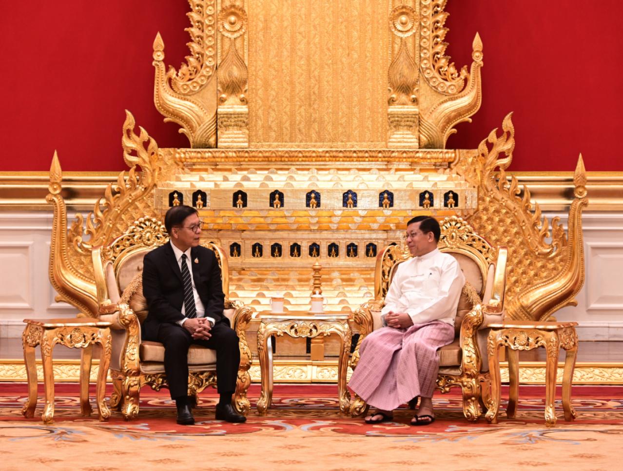 ပြည်ထောင်စုသမ္မတမြန်မာနိုင်ငံတော်၊ နိုင်ငံတော်သမ္မတ ဦးမင်းအောင်လှိုင်ထံ ထိုင်းနိုင်ငံ၊ ဒုတိယဝန်ကြီးချုပ်နှင့် နိုင်ငံခြားရေးဝန်ကြီး ဦးဆောင်သော ကိုယ်စားလှယ်အဖွဲ့က လာရောက်ဂါရဝပြုတွေ့ဆုံ