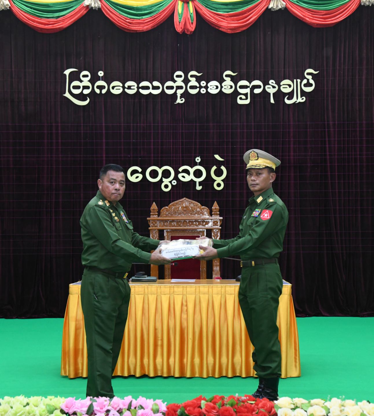 ထို့နောက် တပ်မတော်ကာကွယ်ရေးဦးစီးချုပ်က တပ်နယ်များမှ အရာရှိ၊ စစ်သည်၊ မိသားစုများအတွက် စားသောက်ဖွယ်ရာပစ္စည်းများနှင့် ချီးမြှင့်ငွေများကို ပေးအပ်ရာ တိုင်းမှူးနှင့်တပ်နယ်မှူးတို့က လည်းကောင်း၊ တပ်မတော်ကာကွယ်ရေး ဦးစီးချုပ်၏ ဇနီးက တပ်နယ်များရှိ မိခင်နှင့်ကလေးစောင်ရှောက်ရေးအသင်းအတွက် ချီးမြှင့်ငွေများကိုပေးအပ်ရာ တိုင်းမှူး၏ဇနီးနှင့် တပ်နယ်မှူး၏ဇနီးက လည်းကောင်း အသီးသီး လက်ခံရယူကြသည်။