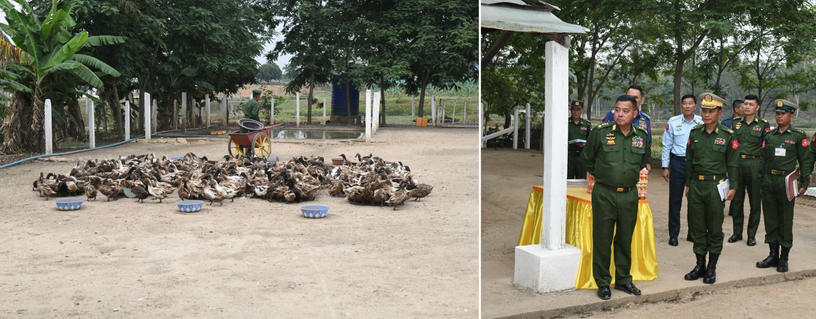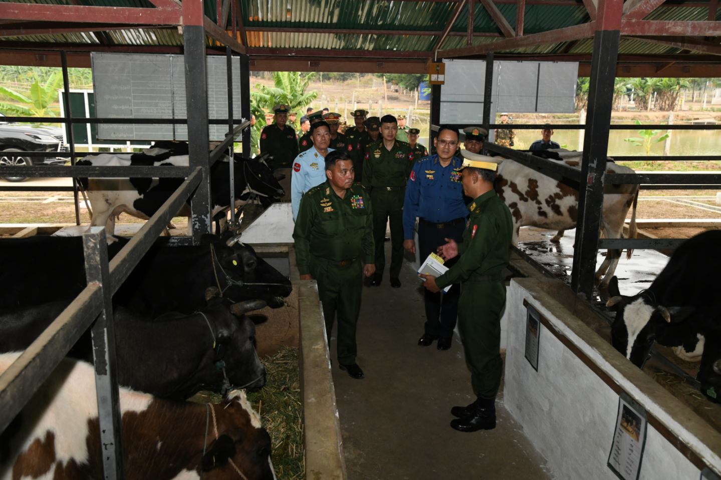 ထို့ပြင် တပ်မတော်ကွယ်ရေးဦးစီးချုပ်နှင့် အဖွဲ့ဝင်များသည် ယမန်နေ့ညနေပိုင်း တွင်လည်း တြိဂံဒေသတိုင်းစစ်ဌာနချုပ် စိုက်ပျိုး/မွေးမြူရေးဇုန်အတွင်းရှိ နို့စားနွား၊ အသားတိုးနွား၊ DYL ဝက်၊ ငါး၊ ဥစားကြက်၊ အသားစားကြက်၊ ကာကီကင်းဘဲများ၊ ဒေသကြက်များမွေးမြူထားရှိမှုနှင့် စိုက်ပျိုးမွေးမြူရေးလုပ်ငန်းများ အကောင်အထည် ဖော်ဆောင်ရွက်နေမှုများကို လိုက်လံကြည့်ရှုစစ်ဆေးကာ တာဝန်ရှိသူများ၏ တင်ပြ ချက်များအပေါ် လိုအပ်သည်များ လမ်းညွှန်မှာကြားခဲ့ကြောင်း သတင်းရရှိသည်။