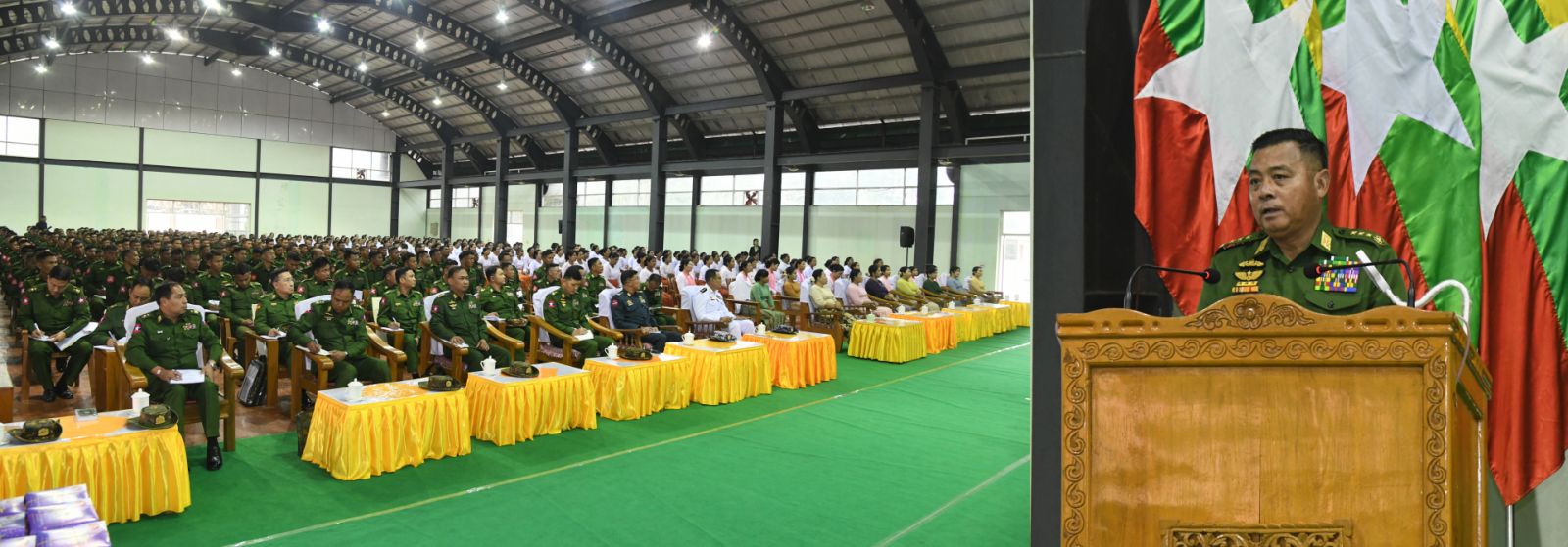 ထိုသို့ တွေ့ဆုံစဉ် တပ်မတော်ကာကွယ်ရေးဦးစီးချုပ်က အမှာစကားပြောကြား ရာတွင် တပ်မတော်သားများဖြစ်သည့်အတွက် စည်းကမ်းလိုက်နာမှု၊ အမိန့်နာခံမှုနှင့် စနစ်တကျနေထိုင်တတ်မှုသည်အရေးကြီးကြောင်း၊ ကွပ်ကဲအုပ်ချုပ်သည့် ခေါင်းဆောင် များအနေဖြင့် မိမိကိုယ်တိုင်ကစ၍ စည်းစနစ်တကျနေထိုင်ပြီး လက်အောက်ကိုလည်း စည်းကမ်းတကျ ကွပ်ကဲအုပ်ချုပ်ရန်လိုကြောင်း၊ သို့မှသာ ပြည်သူကလေးစားအားကျ ယုံကြည်အားကိုးရသည့် တပ်မတော်သားကောင်းများဖြစ်ပေါ်လာမည်ဖြစ်ကြောင်း။