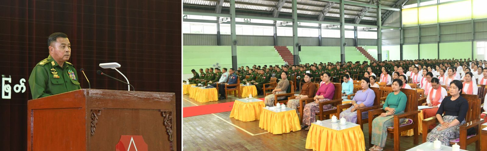ထို့နောက် တပ်မတော်ကာကွယ်ရေးဦးစီးချုပ်က တပ်နယ်များမှ အရာရှိ၊ စစ်သည်၊ မိသားစုများအတွက် စားသောက်ဖွယ်ရာပစ္စည်းများနှင့် ချီးမြှင့်ငွေများကို ပေးအပ်ရာ တပ်နယ်မှူးက လည်းကောင်း၊ တပ်မတော်ကာကွယ်ရေးဦးစီးချုပ်၏ ဇနီးက တပ်နယ်များရှိ မိခင်နှင့်ကလေးစောင်ရှောက်ရေးအသင်းအတွက် ချီးမြှင့်ငွေများ ကိုပေးအပ်ရာ တပ်နယ်မှူး၏ဇနီးက လည်းကောင်း အသီးသီးလက်ခံရယူကြသည်။