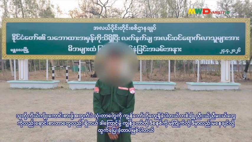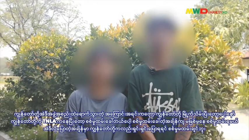 ၃။ ကျွန်တော်တို့ အဲဒီအဖွဲ့အစည်းထဲ ရောက်သွားတဲ့ အကြောင်းအရင်းကတော့ ကျွန်တော်တို့မြို့ကို သိမ်းပြီးတော့ ကျွန်တော်တို့ကို TNLA ကနေပြီးတော့ စစ်မှုထမ်းခေါ် တယ်။ စစ်မှုထမ်းခေါ်တဲ့အချိန်ကျတော့ မဖြစ်မနေစစ်မှုထမ်းရမယ်။ အဲဒီလိုပြောတဲ့ အချိန်မှာ ကျွန်တော်တို့ကလည်း ရှင်းရှင်းပြောရရင် စစ်မှုမထမ်းချင်ဘူး။ အဲဒီအချိန်မှာ ကျွန်တော် တို့ကို ပကဖ အဖွဲ့အစည်းကနေပြီးတော့ ဒီအဖွဲ့အစည်းထဲဝင်လာခဲ့ပါ။ ဒီအဖွဲ့ အစည်းထဲ ဝင်ပြီးသွားရင် မင်းတို့ကို စစ်မှုလည်းမထမ်းခိုင်းတော့ဘူး။ မင်းတို့ထွက်ချင်တဲ့ အချိန်ပြန်ထွက်လို့ရတယ် ဆိုပြီးတော့ ကျွန်တော်တို့ကိုအယုံသွင်းပြီး လိမ်ခေါ်လာခဲ့တယ်။ ကျွန်တော်တို့ ပြန်ထွက်မယ် ပြောတော့ သူတို့ကပေးလည်းမထွက်တော့ပါဘူး။ ထွက်ချင်ရင် တစ်ယောက် ၁၀ သိန်းပေးရမယ်ဆိုပြီး ကျွန်တော်တို့ကိုပြောပါတယ်။ သင်တန်း ကို သုံးလ ခွဲတက် ရပါတယ်။ သင်တန်းတက်တဲ့အချိန်မှာ တောထဲတောင်ထဲမှာ ဆိုတော့ အနေဆင်းရဲ တယ်။ စားတဲ့အခါကျတော့လည်း ထမင်းအသိုးတွေနဲ့ လည်းစားခဲ့ရ တယ်။ လုံးဝမစားရတဲ့ ရက်တွေလည်းရှိတယ်။ ကျွန်တော်တို့ကို ကျတော့ အမြဲတန်းအပြစ်မရှိ အပြစ်ရှာပြီးရိုက် တယ်။ ရိုက်ပြီးမိုက်မိုက်ရိုင်းရိုင်း လည်းဆဲ ပါတယ်။ ကျွန်တော်တို့သင်တန်းဆင်းပြီးတော့ ကျွန်တော်တို့ကို မိုးကုတ်မှာဘဲ တာဝန်ထမ်းဆောင်ရတယ်။ ကျွန်တော်က အသက်မပြည့် သေး တဲ့အတွက် သူတို့က ရှေးတန်းကို မထွက်ခိုင်းဘူး။ နောက်တန်းမှာပဲ သူတို့ အတွက် အလှူခံ ပြီး ပိုက်ဆံရှာပေးရတယ်။ ပြည်သူတွေဆီက အလှူခံထားတဲ့ ငွေတွေကိုလည်း သူတို့တွေက အလွဲသုံးစားလုပ်တယ်။ အောက်ကရဲဘော် တွေကို မကြည့်ကြဘူး။ ပြီးရင် မူးယစ်ဆေးသုံးတဲ့သူတွေလည်းရှိတယ်။ ခေါင်းဆောင်ပိုင်းထဲက အဲဒီလိုမျိုး ပြည်သူ တွေဆီ က အလှူခံထားတဲ့ငွေကိုလည်း သူတို့အပျော်အတွက်သုံးကြ တယ်။ ကျွန်တော်တို့အဲဒီမှာ နေရတာ ကျတော့ ကျွန်တော်တို့အဖွားအရွယ် လောက်ရှိတဲ့ အမေအိုကြီးကို သူတို့ ယောက်ကျားသားတွေ နှစ်ယောက် သုံးယောက်လောက်က ဘာမှမဟုတ်ဘဲနဲ့ သက်သေ မခိုင်လုံတဲ့ကိစ္စတွေနဲ့ ပတ်သက်လို့ သူတို့ချုပ်နှောင်တယ်။ ပြီးတော့ ဖိနပ်တွေနဲ့ဝိုင်းရိုက်တာ မျိုးတွေ လည်းရှိတယ်။ ကျွန်တော်တို့လည်း သူတို့ရဲ့ ညှင်းပန်းနှိပ်စက်မှုတွေ ကြည့်ပြီး ကျွန်တော်တို့လည်း ကျွန်တော်တို့ကို ကျွန်တော်တို့ ရှက်လာတယ်။ ပြီးတော့ ကျွန်တော်တို့ အရမ်းမှားနေပြီထင်ပြီး ကျွန်တော်တို့ တပ်မတော်ထံ အလင်းဝင် လာတယ်။ ကျွန်တော်တို့ အလင်း ဝင်လာတဲ့အခါမှာလည်း တပ်မတော်မှ တာဝန်ရှိသူများက ကျွန်တော်တို့ကို နွေးနွေး ထွေးထွေးကြိုဆိုတယ်။ လိုလေသေး မရှိအောင်ထားပါတယ်။ ပြီးတော့ မကြာခင်မှာ ကျွန်တော်တို့မိဘတွေနဲ့ ပြန်