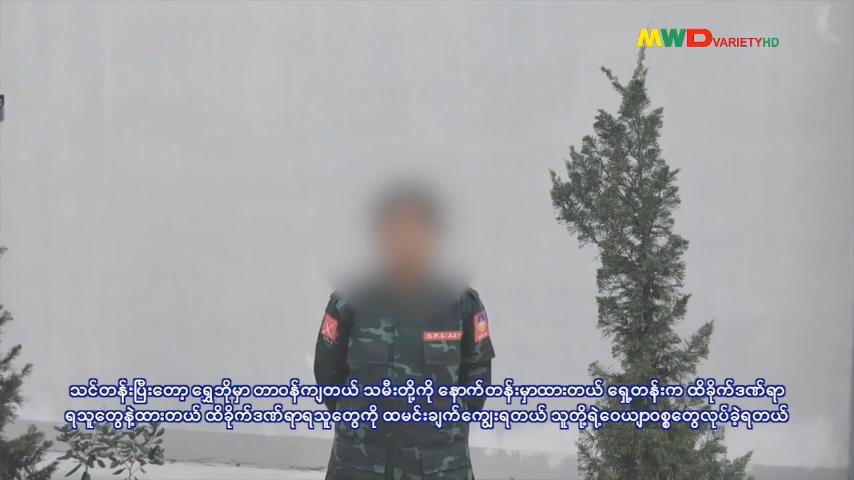 ၁။ MDY-PDF တွေ ကျွန်တော်တို့ သပိတ်ကျင်းမြို့နယ်ထဲ ဝင်ရောက်လာတဲ့အခါမှာ တစ်အိမ်တစ်ယောက်အနေနဲ့ မဖြစ်မနေဝင်ရမဲ့စနစ်လို့ သူတို့ပြောတယ်။ ပြောတဲ့အခါမှာ ကျွန်တော်တို့ တကယ်လို့မဝင်ရင် မိသားစုတွေကို အန္တရာယ်ပေးမယ် ဒုက္ခပေးမယ်ဆိုလို့ ကျွန်တော်တို့ဝင်ခဲ့ရပါတယ်။ ရောက်တဲ့အချိန်မှာ သင်တန်းကာလမှာ ကျွန်တော်တို့ကို ငှပျော တောဆိုတဲ့နေရာကိုပို့ပါတယ်။ ငှပျော်တောကနေပြီးတော့ သတ္တုတွင်းဆိုတဲ့နေရာကို ပို့ပါ တယ်။ သတ္တုတွင်းကနေပြီးတော့ ရှမ်း(မြောက်)ကို ရောက်ပါတယ်။ ကျွန်တော်တို့ရတဲ့ ပိုက်ဆံတွေကိုလည်း အထက်အရာရှိကို ပြန်ပေးဆောင်ရတာဖြစ်ပါတယ်။ ဒါပေမယ့် သူတို့က ပြည်သူတွေအတွက် သုံးတာမတွေ့ရပါဘူး။ သူတို့ ကိုယ်ကျိုးကောင်းစားဖို့အတွက် ပဲ သုံးတာတွေကို ကျွန်တော်တို့ တွေ့ရှိခဲ့ပါတယ်။ တချို့ ညီငယ်ညီမငယ်တွေကိုလည်း ရောင်းစားတာတွေလည်း ရှိတယ်။ ဒါကြောင့်မို့ ကျွန်တော်တို့ ဒီစနစ်ကို မကြိုက်လို့ ဒီမှာ လည်း မနေချင်လို့ ထွက်ပြေးခဲ့တာလည်း ဖြစ်ပါတယ်။ အဖွဲ့အစည်းကနေ ထွက်ပြေးလာတဲ့ အချိန်မှာ အခုတပ်မတော်ထံမှာ အလင်းလာဝင်တာပဲ ဖြစ်ပါတယ်။ တပ်မတော်ထံမှာ အလင်းလာဝင်တဲ့အချိန်မှာလည်း တပ်မတော်က နွေးနွေးထွေးထွေး ကြိုဆိုပါတယ်။ နေရေး ၊ ထိုင်ရေး ၊ စားရေး၊ သောက်ရေး အားလုံးအဆင်ပြေအောင် လုပ်ပေးပါတယ်။ ညီအကိုလိုပဲ အားလုံးကို ဆ က်ဆံပါတယ်။ အဖွဲ့ထဲမှာ ကျန်ခဲ့တာ ညီအစ်ကိုမောင်နှမတွေ သူငယ်ချင်းတွေ လည်း တပ်မတော်ထံမှာ အလင်းလာဝင်ဖို့ ဖိတ်ခေါ်ပါတယ်။