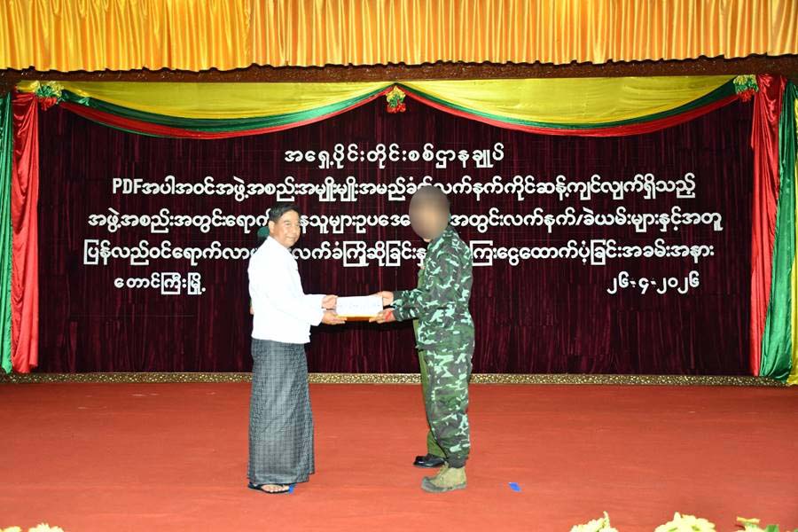 နိုင်ငံတော်အစိုးရသည် PDF အပါအဝင် အဖွဲ့အစည်းအမျိုးမျိုးအမည်ခံ၍ လက်နက် ကိုင် ဆန့်ကျင်လျက်ရှိသည့်် အဖွဲ့အစည်းများအတွင်း ရောက်ရှိနေသူများအား ဉပဒေ ဘောင်အတွင်းသို့ ပြန်လည်ဝင်ရောက်ရန် ဖိတ်ခေါ်၍ ဉပဒေဘောင်အတွင်းသို့ ပြန်လည် ဝင်ရောက်လာကြသူများကိုလည်း လိုအပ်သည့်ကူညီပံ့ပိုးမှုများ ဆောင်ရွက်ပေး လျက်ရှိ သည်။