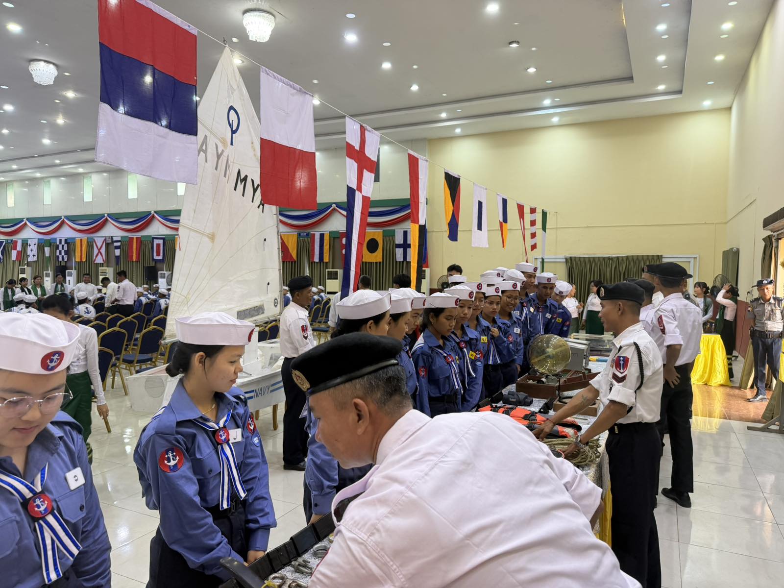 သင်တန်းဖွင့်ပွဲများကို နေပြည်တော်ကောင်စီနယ်မြေ၊ မန္တလေးတိုင်း ဒေသကြီးတွင် မန္တလေးမြို့၊ ရန်ကုန်တိုင်းဒေသကြီးတွင် ရန်ကုန်မြို့နှင့် ကိုကိုးကျွန်းမြို့၊ ဧရာဝတီတိုင်း ဒေသကြီးတွင် ဟိုင်းကြီးကျွန်းမြို့နှင့် ပုသိမ်မြို့၊ မွန်ပြည်နယ်တွင် မော်လမြိုင်မြို့၊ တနင်္သာရီ တိုင်းဒေသကြီးတွင် ဟိန်းဇဲဒေသ၊ မြိတ်မြို့နှင့် ကျွန်းစုမြို့၊ ကရင် ပြည်နယ်တွင် ဘားအံ မြို့နှင့် ရှမ်းပြည်နယ်တွင် ကျိုင်းတုံမြို့ တို့ရှိ ရေကြောင်းလူငယ် စခန်းများ၌ စုစုပေါင်း သင်တန်းသား၊ သင်တန်းသူ ၈၀၀ ဦးတို့ဖြင့် အသီးသီး ဖွင့်လှစ်ကြသည်။