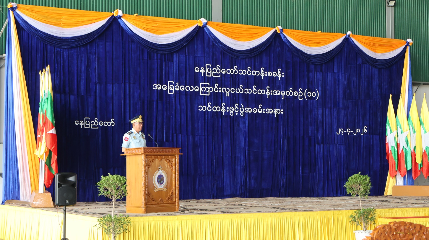 အလားတူ ကျောင်းသား၊ ကျောင်းသူ မျိုးဆက်သစ်လူငယ်မောင်မယ် များ နွေရာသီကျောင်းပိတ်ရက် ကာလအတွင်း လေကြောင်းပညာသမိုင်းကို လေ့လာခြင်းဖြင့် လေကြောင်းနှင့်အာကာသသိပ္ပံ ပညာရပ်များတွင် စိတ်၀င်စားမှု တိုးပွားလာစေရန်၊ လေယာဉ်ပျံသန်းမှုနှင့် သက်ဆိုင်သောပညာရပ်များကို တတ်သိနားလည်ခြင်းဖြင့် နိုင်ငံတော် ကာကွယ်ရေးလုပ်ငန်းများတွင် အထောက် အကူဖြစ်လာစေရန်၊ စိတ်ဓာတ်၊ စည်းကမ်းနှင့် ကိုယ်လက်ကြံ့ခိုင်မှု ကောင်းမွန်မြင့်မားပြီး စည်းလုံးညီညွတ်စွာ စုပေါင်းဆောင်ရွက်မှု အလေ့ အကျင့်ရရှိစေရန်နှင့် လူငယ်များ၏ ဝါသနာပါရာ လေ့ကျင့်မှုအနေဖြင့် မြှင့်တင်ပေးရန်၊ မျိုးဆက် သစ်လူငယ်မောင်မယ်များကို ယုံကြည်ချက်၊ ခံယူချက် မြင့်မားမှန်ကန်စေပြီး အနာဂတ်တပ်မတော်နှင့် နိုင်ငံတော်တည်ဆောက်နိုင်ရေးအတွက် လူ့စွမ်းအားအရင်း အမြစ်များ မွေးထုတ်ပေးနိုင်ရန် ရည်ရွယ်၍ ကာကွယ်ရေးဦးစီး ချုပ်ရုံး(လေ)မှ ကြီးမှူးဖွင့် လှစ်သည့် အခြေခံ လေကြောင်းလူငယ်သင်တန်း အမှတ်စဉ်(၁၀)နှင့် တန်းမြင့်လေကြောင်း လူငယ်သင်တန်း အမှတ်စဉ်(၉)သင်တန်းဖွင့်ပွဲအခမ်းအနားကို ယနေ့နံနက်ပိုင်းတွင် နေပြည်တော် သင်တန်း စခန်းအပါအဝင် သင်တန်းစခန်း ၂၀ ခု၌ ကျင်းပသည်။