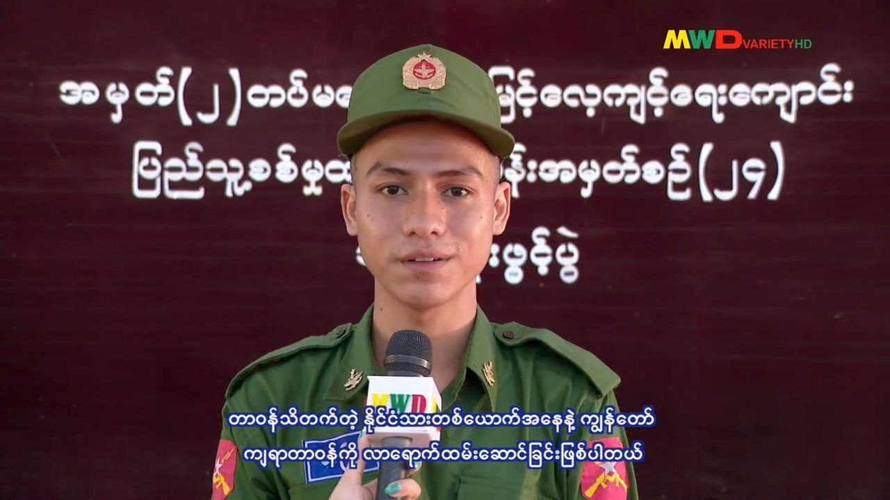 ယနေ့တွင် ဖွင့်လှစ်လိုက်သည့် ပြည်သူ့စစ်မှုထမ်းသင်တန်းအမှတ်စဉ်(၂၄)မှ နိုင်ငံ့သားကောင်းလူငယ်များအဖြစ် နိုင်ငံတော်ကာကွယ်ရေးနှင့်လုံခြုံရေးတာဝန်များ ကို ဂုဏ်ယူစွာထမ်းဆောင်ရန် သင်တန်းတက်ရောက်ကြမည့် သင်တန်းသားများ၏ စကားသံများကိုလည်း ယခုလိုပဲ ကြားသိရပါတယ် ----