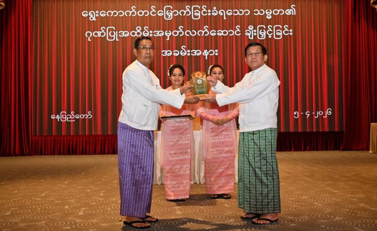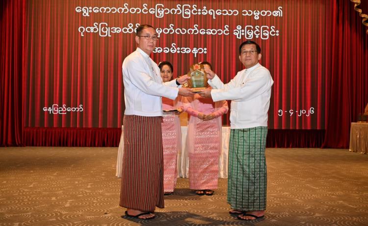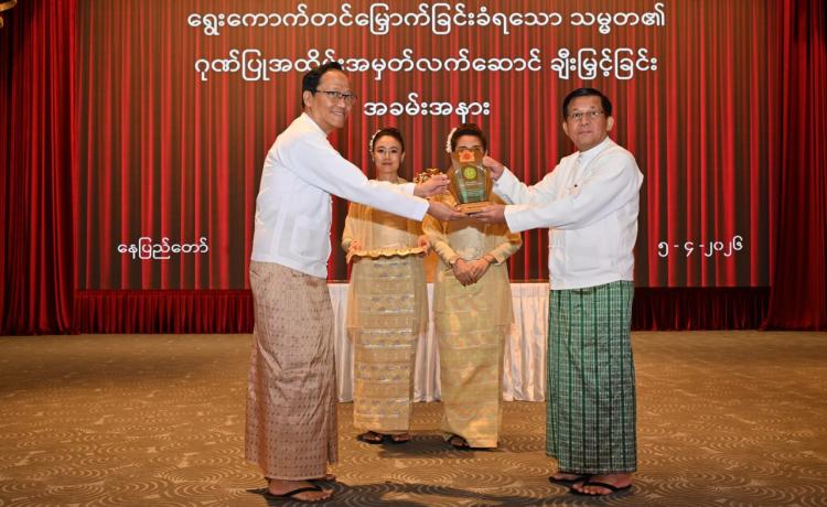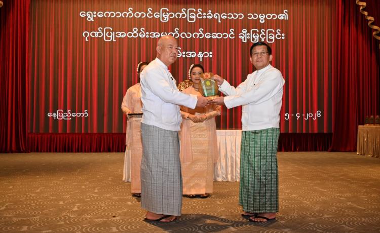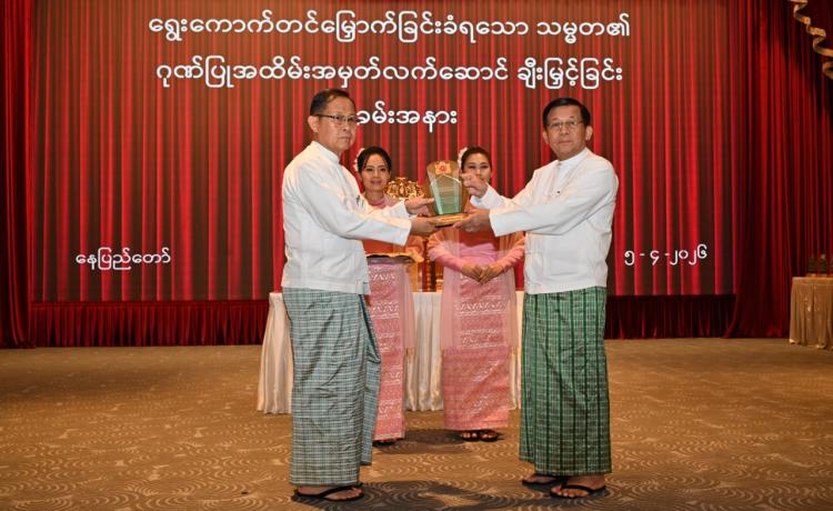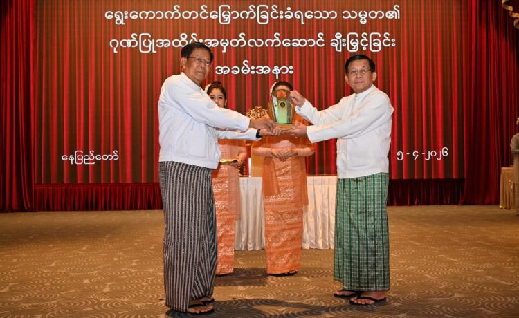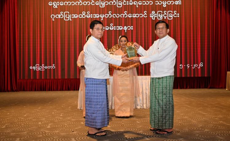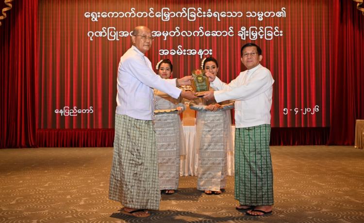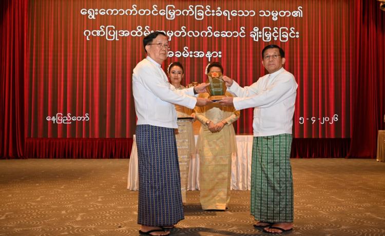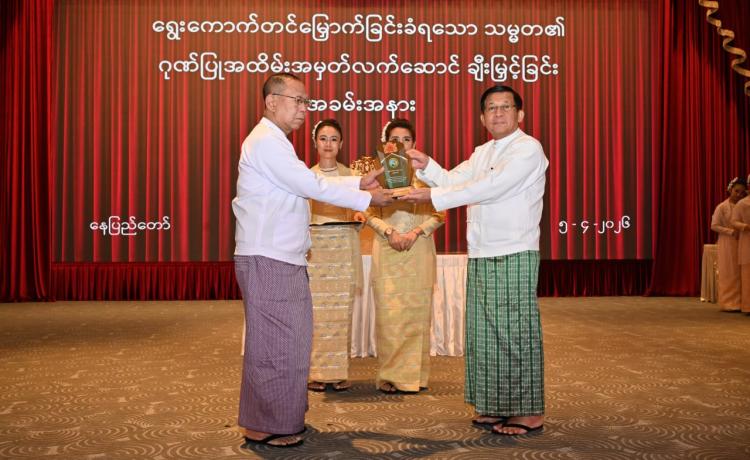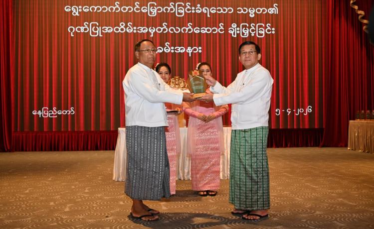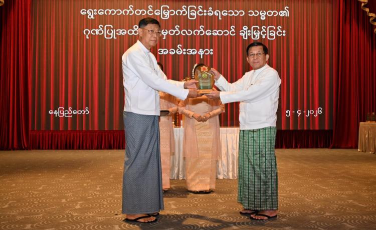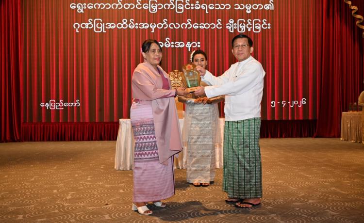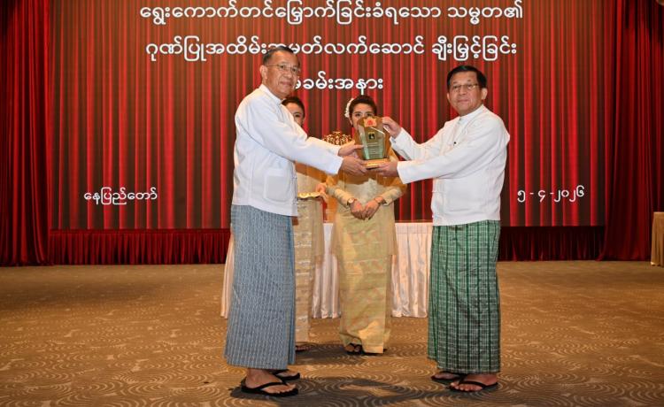ရွေးကောက်တင်မြှောက်ခြင်းခံရသောသမ္မတ၏ ဂုဏ်ပြုအထိမ်းအမှတ်လက်ဆောင်ချီးမြှင့်ခြင်းအခမ်းအနားကျင်းပ နေပြည်တော်၊ ဧပြီ - ၅