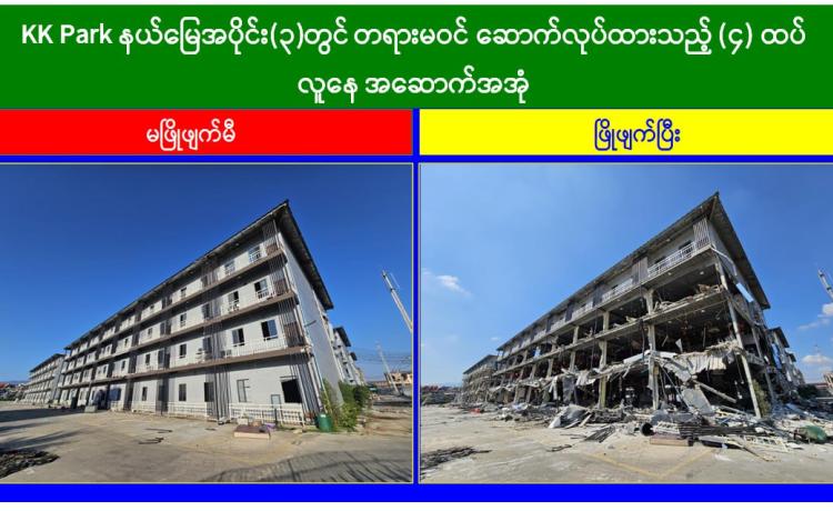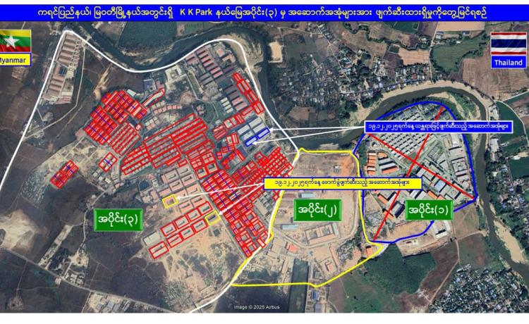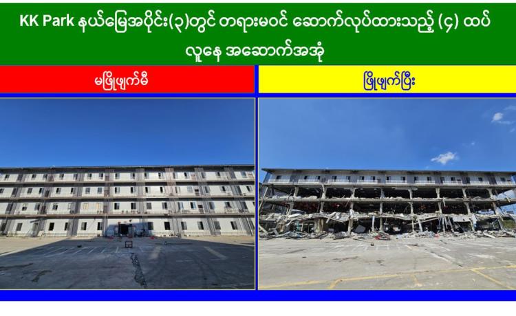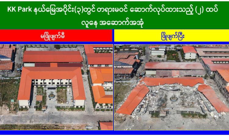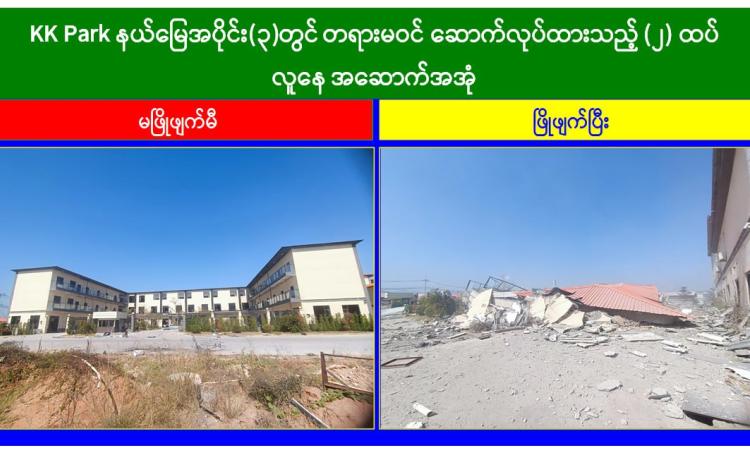 KK Park နယ်မြေအတွင်းရှိ အွန်လိုင်းလိမ်လည်လောင်းကစားမှုကျူးလွန်ရာတွင် အသုံးပြုသည့် အဆောက်အအုံ ၄၈၂ လုံး စနစ်တကျ ဖြိုချဖျက်...