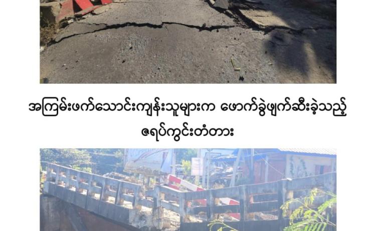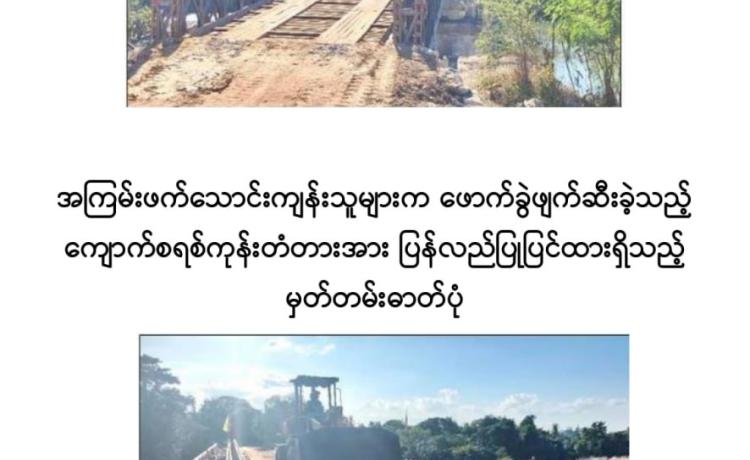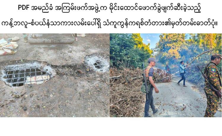 PDF အမည်ခံ အကြမ်းဖက်သမားများ မိုင်းထောင်ဖောက်ခွဲဖျက်ဆီးခဲ့သည့် ကန့်ဘလူမြို့နယ်၊ ကန့်ဘလူ-စံပယ်နံသာကားလမ်းပေါ်ရှိ သံကူကွန်...