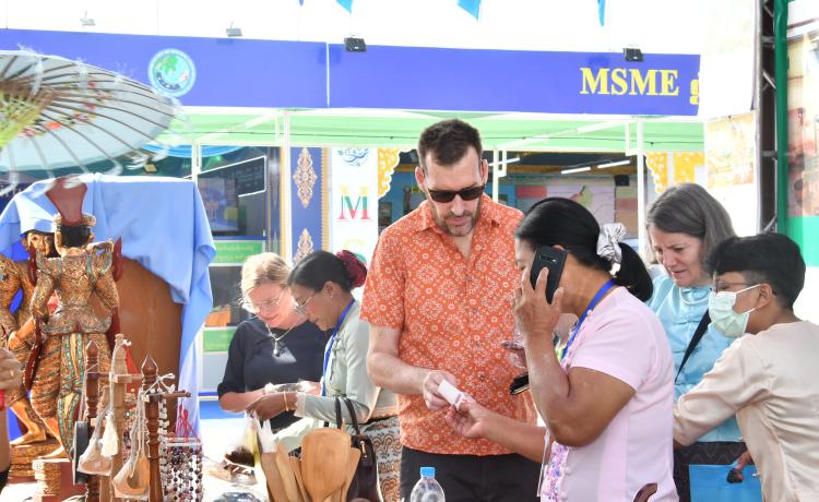နေပြည်တော်ရင်ပြင်တွင် ကျင်းပသည့် ပြည်ထောင်စုအဆင့် MSME ထုတ်ကုန်ပြပွဲနှင့် ဈေးရောင်းပွဲတော်တွင် လုပ်ငန်း/စီးပွားချိတ်ဆက်...