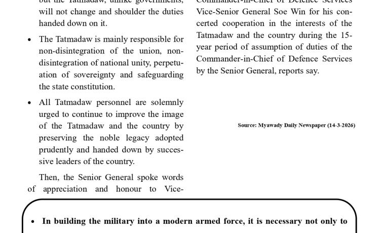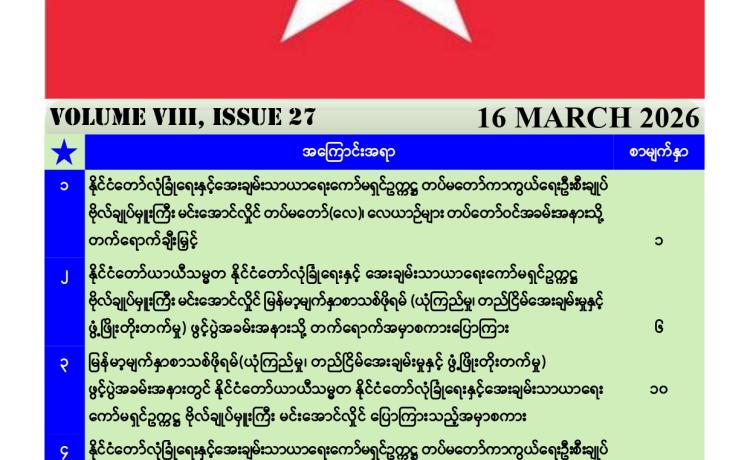 ပြည်ထောင်စုသမ္မတမြန်မာနိုင်ငံတော် အမျိုးသားကာကွယ်ရေးနှင့်လုံခြုံရေးကောင်စီရုံး အမိန့်အမှတ်၊ ၁၃ / ၂၀၂၆ ၁၃၈၇ ခုနှစ်၊ တပေါ...