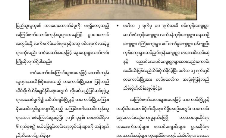 ရန်ကုန်တိုင်းဒေသကြီး၊ ကြည့်မြင်တိုင်မြို့နယ်၌ အမျိုးသား ၁၃ ဦးအား ဆူပူအကြမ်းဖက်ဆန္ဒပြရာတွင် အသုံးပြုသ