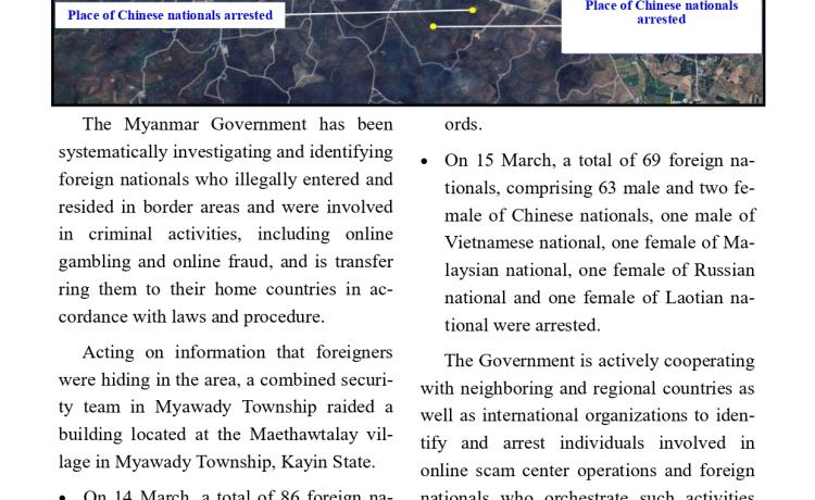 မြန်မာနိုင်ငံအတွင်း တရားမဝင် နယ်စပ်ဖြတ်ကျော်ဝင်ရောက်လာသည့် ပြည်ပနိုင်ငံသား ၆၉ ဦးအား မြဝတီမြို့နယ်၊ မဲထော်သလေးကျေးရွာအနီး...
