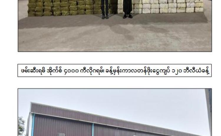 ရခိုင်ပြည်နယ်နှင့် မလေးရှားနိုင်ငံသို့ ပို့ဆောင်မည့် မူးယစ်ဆေးဝါးများဖမ်းဆီးရမိ နေပြည်တော်၊ နိုဝင်ဘာ   ၁၈  ရက်