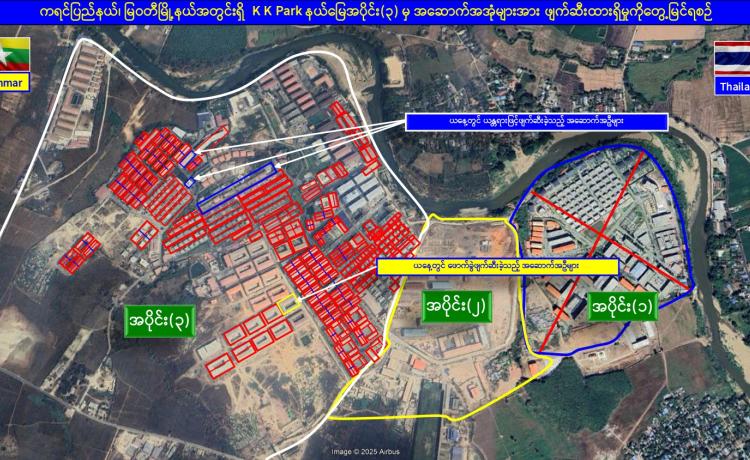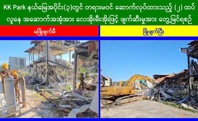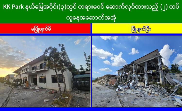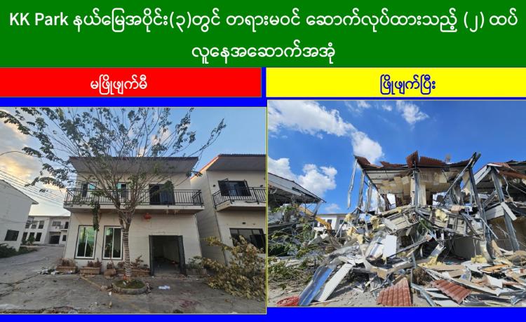 KK Park နယ်မြေအတွင်းရှိ အွန်လိုင်းလိမ်လည်လောင်းကစားမှုကျူးလွန်ရာတွင် အသုံးပြုသည့် အဆောက်အအုံ ၁၂ လုံး ထပ်မံဖြိုချဖျက်ဆီး၊...