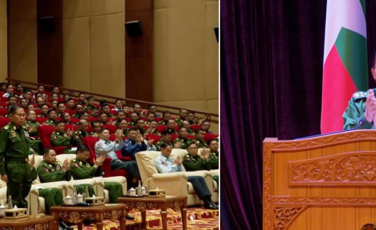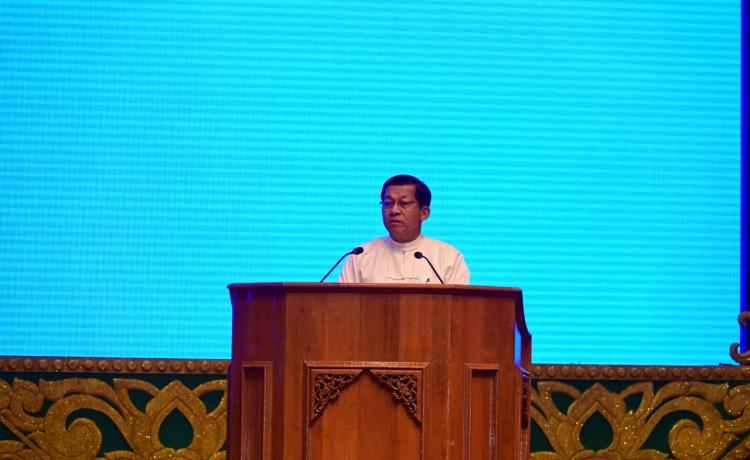 နိုင်ငံတော်လုံခြုံရေးနှင့်အေးချမ်းသာယာရေးကော်မရှင်ဥက္ကဋ္ဌ  တပ်မတော်ကာကွယ်ရေးဦးစီးချုပ် ဗိုလ်ချုပ်မှူးကြီး မင်းအောင်လှိုင...