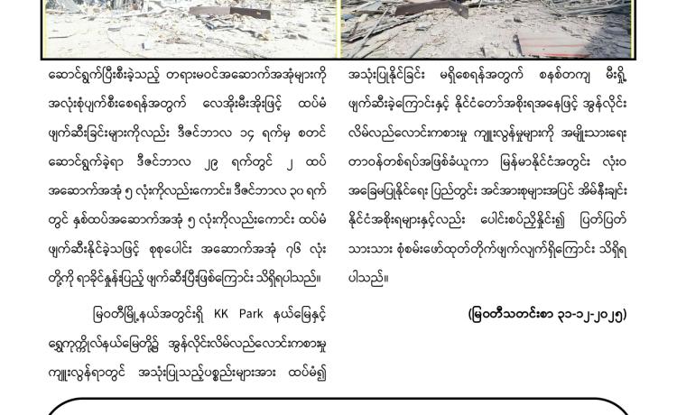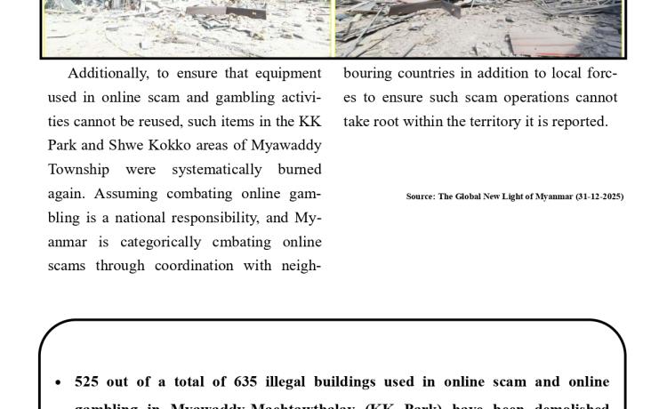 KK Park နယ်မြေအတွင်း အွန်လိုင်းလိမ်လည်လောင်းကစားမှု ကျူးလွန်ရာတွင် အသုံးပြုသည့် တရားမဝင်အဆောက်အအုံ ၅၃၈ လုံးကို စနစ်တကျဖြ...