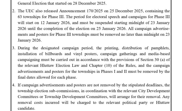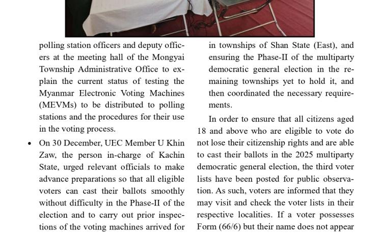 ရှမ်းပြည်နယ်(မြောက်ပိုင်း)အတွင်း ၂၀၂၅ ခုနှစ်ပါတီစုံဒီမိုကရေစီအထွေထွေရွေးကောက်ပွဲ အပိုင်း(၁) နှင့် ပတ်သက်၍   အားနည်းချက်/...