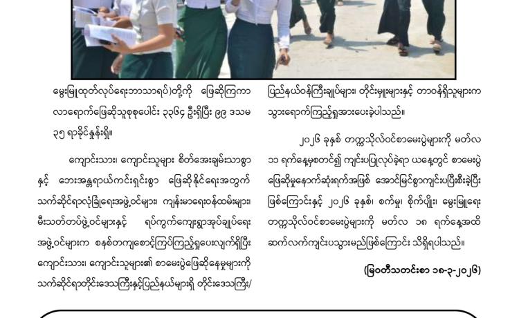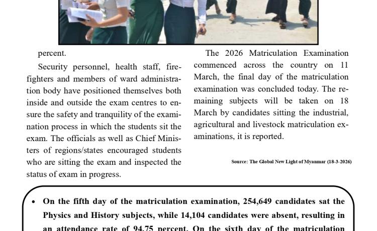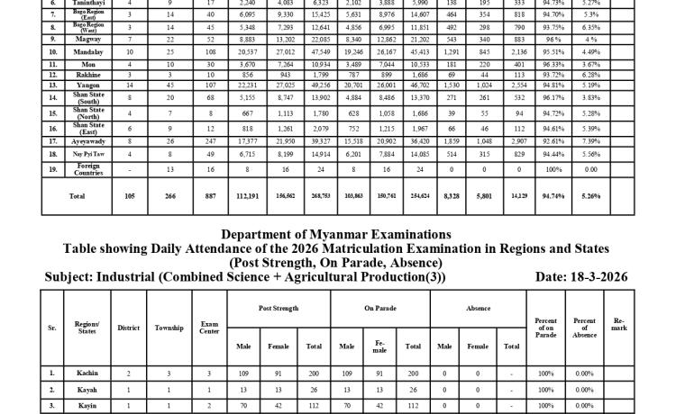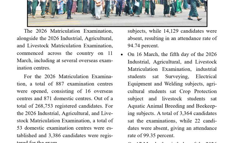 ၂၀၂၆ခုနှစ်၊ စက်မှု၊ စိုက်ပျိုး၊ မွေးမြူရေးတက္ကသိုလ်ဝင်စာမေးပွဲ နောက်ဆုံးနေ့ သက်ဆိုင်ရာ ဘာသာရပ်များအား ဆက်လက်ဖြေဆို နေ...