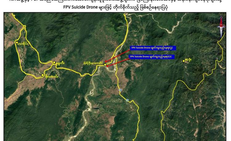KIA အဖွဲ့နှင့် PDF အမည်ခံအကြမ်းဖက်သောင်းကျန်းသူပူးပေါင်းအဖွဲ့များက မြစ်ကြီးနားလေဆိပ်အတွင်းသို့ FPV suicide drone များဖြင...