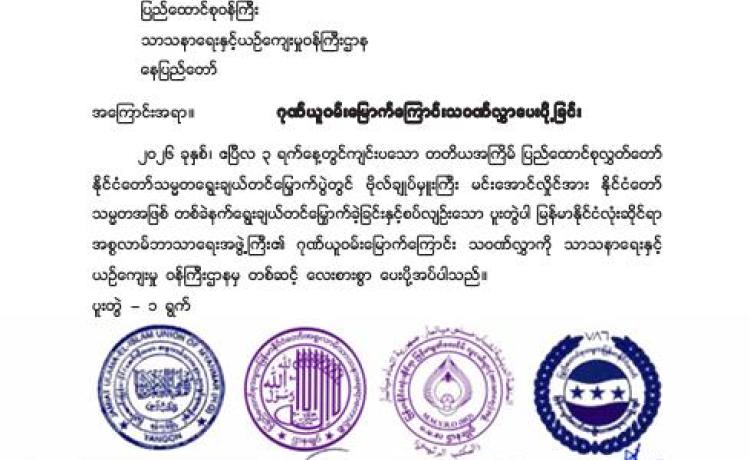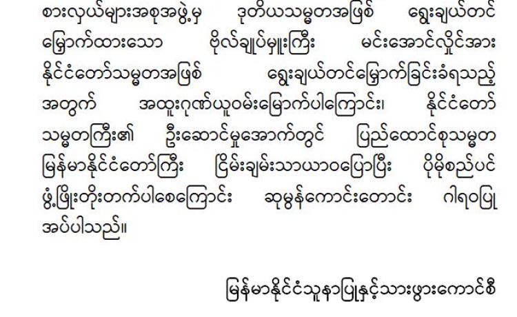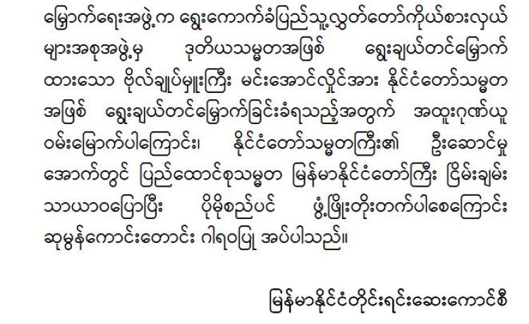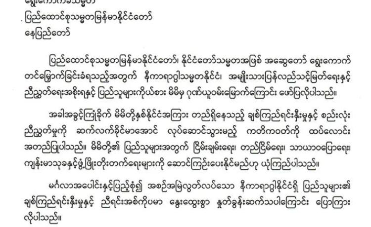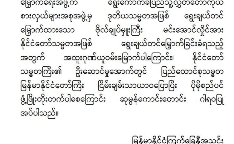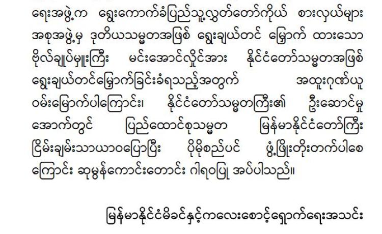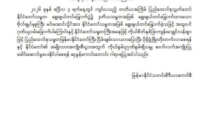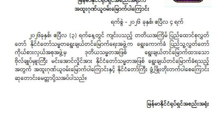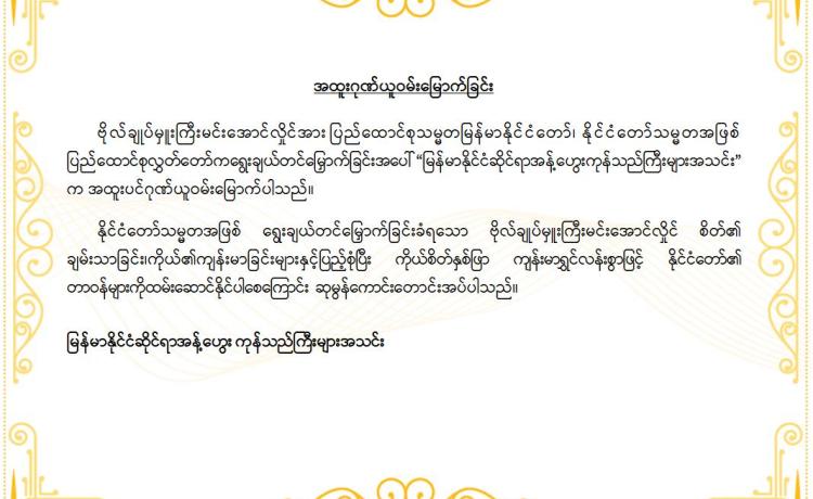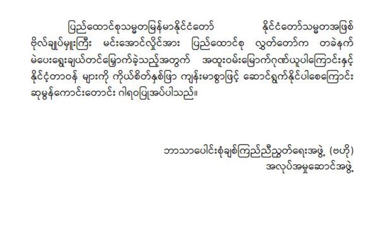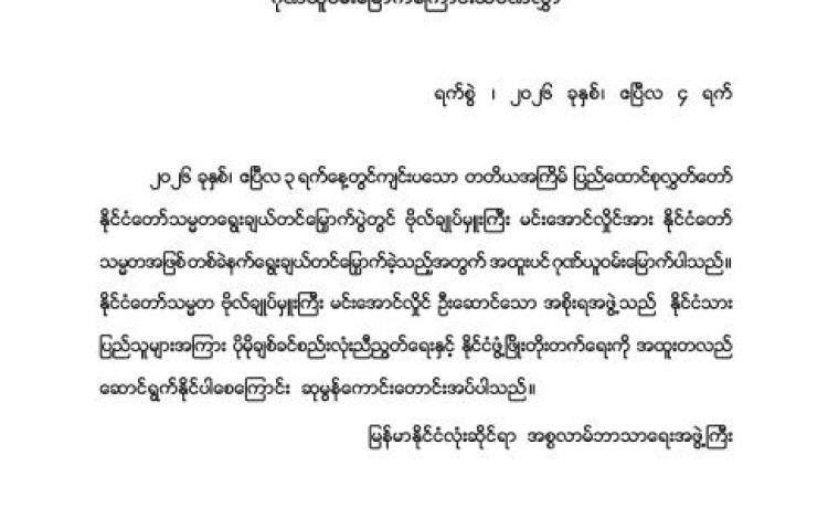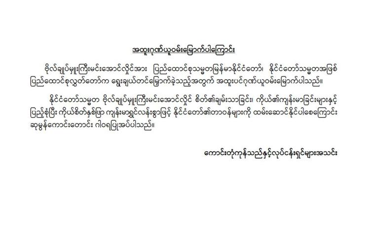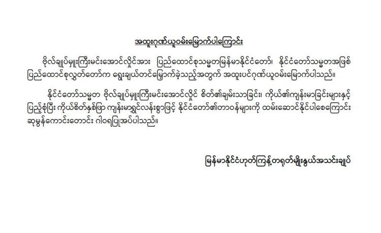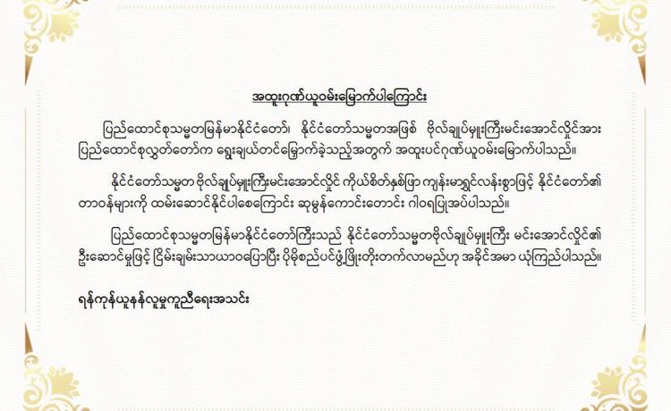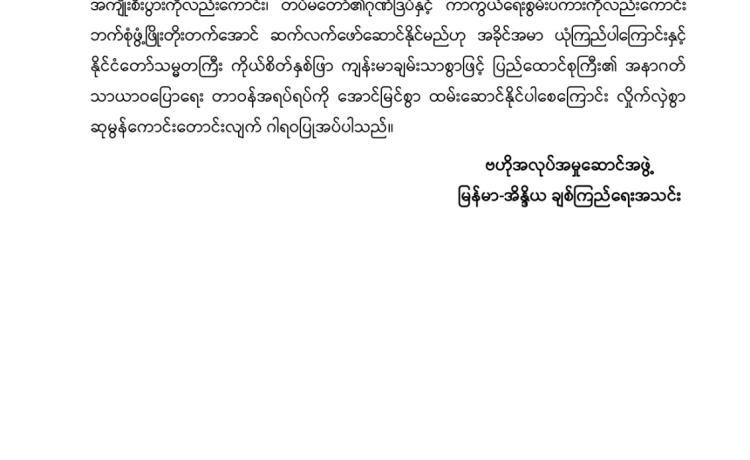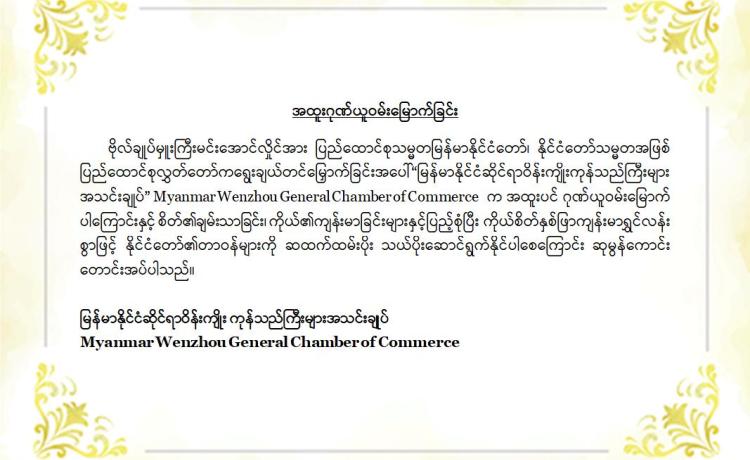 မြန်မာနိုင်ငံလိုင်စင်ရ ကန်ထရိုက်တာများ အသင်းချုပ် မှ အထူးဂုဏ်ယူဝမ်းမြောက်ကြောင်း ထုတ်ပြန်ကြေညာချက်