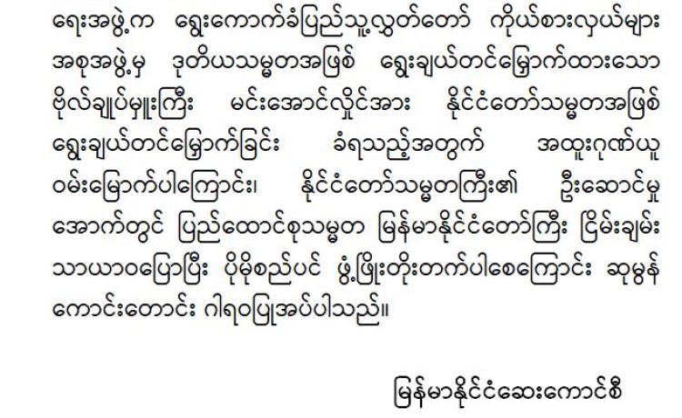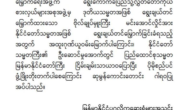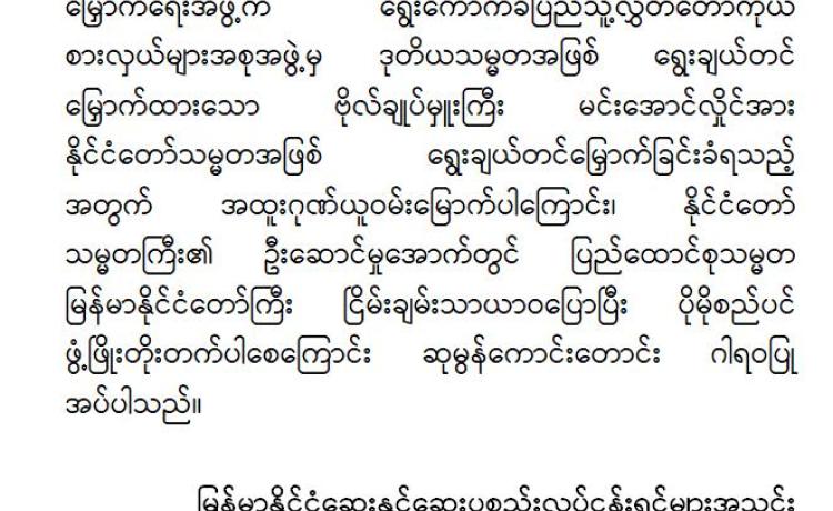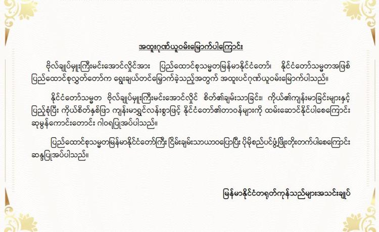 ဗိုလ်ချုပ်မှူးကြီး မင်းအောင်လှိုင်အား နိုင်ငံတော်သမ္မတအဖြစ် ရွေးချယ်တင်မြှောက်ခြင်း ခံရသည့်အတွက် ပါတီများ၊ အသင်း/အဖွဲ့မျ...