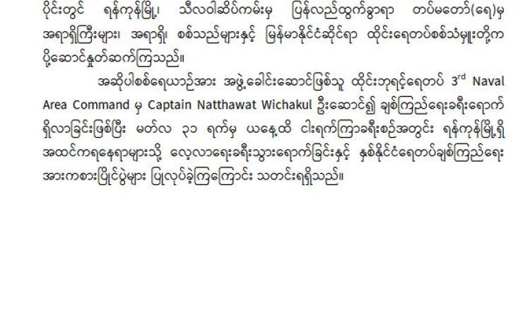 ချစ်ကြည်ရေးခရီးလည်ပတ်ရန်ရောက်ရှိနေသည့် ထိုင်းဘုရင့်ရေတပ်မှ စစ်ရေယာဉ် ပြန်လည်ထွက်ခွာ နေပြည်တော်၊ ၂၀၂၆  ဧပြီ ၄