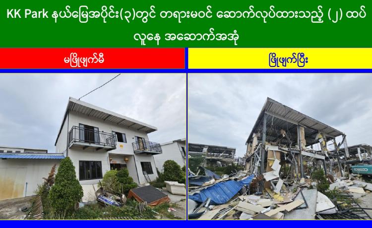 KK Park နယ်မြေအတွင်းရှိ အွန်လိုင်းလိမ်လည်လောင်းကစားမှုကျူးလွန်ရာတွင် အသုံးပြုသည့် အဆောက်အအုံ ၁၅ လုံး ထပ်မံဖြိုချဖျက်ဆီး၊...