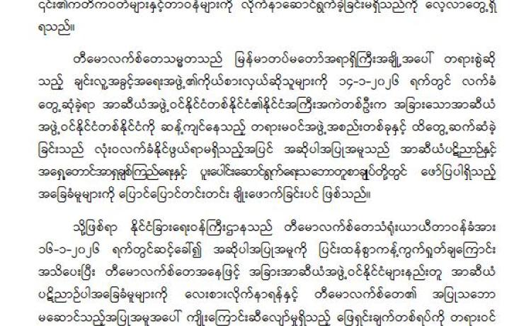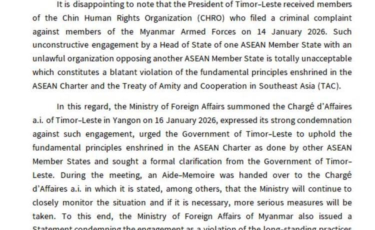 တီမောလက်စ်တေသံရုံးယာယီတာဝန်ခံအား မြန်မာနိုင်ငံမှ (၇)ရက်အတွင်း ပြန်လည်ထွက်ခွာရန် ခေါ်ယူညွှန်ကြားခဲ့ခြင်း