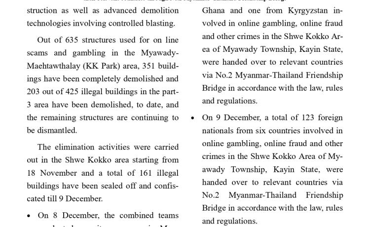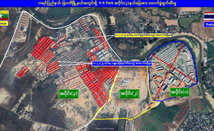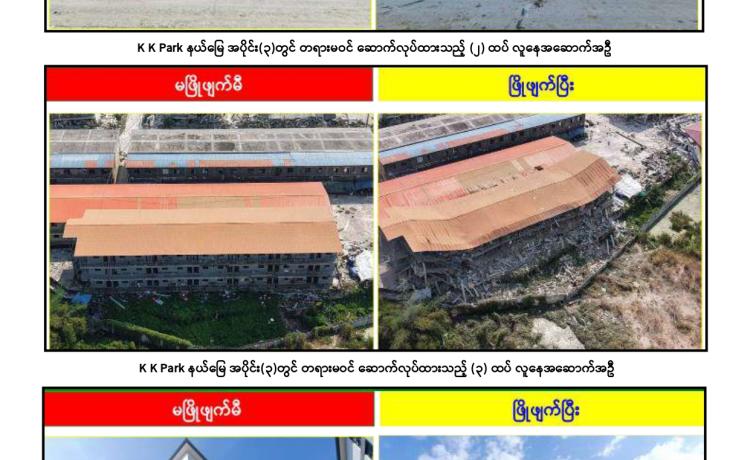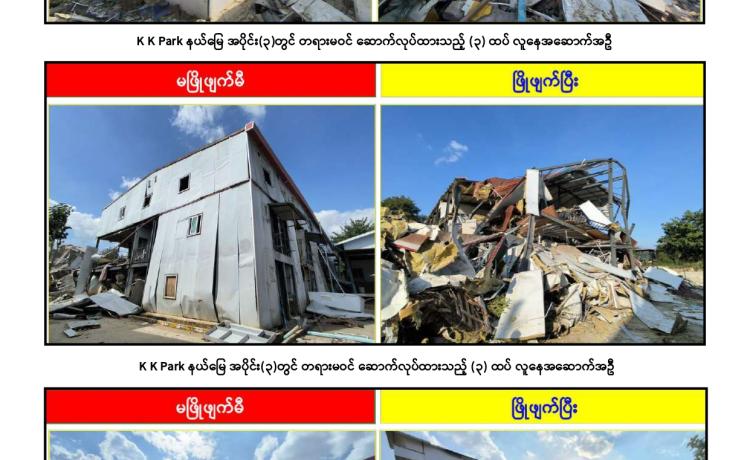 KK Park နယ်မြေအတွင်းရှိ အွန်လိုင်းလိမ်လည်လောင်းကစားမှုကျူးလွန်ရာတွင် အသုံးပြုသည့် အဆောက်အအုံ ၂၀ လုံး ထပ်မံဖြိုချဖျက်ဆီး၊...